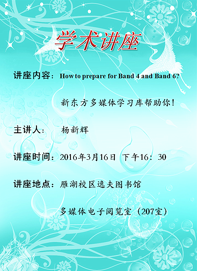 学术讲座:How to prepare for Band 4 and Brand 6——杨新辉