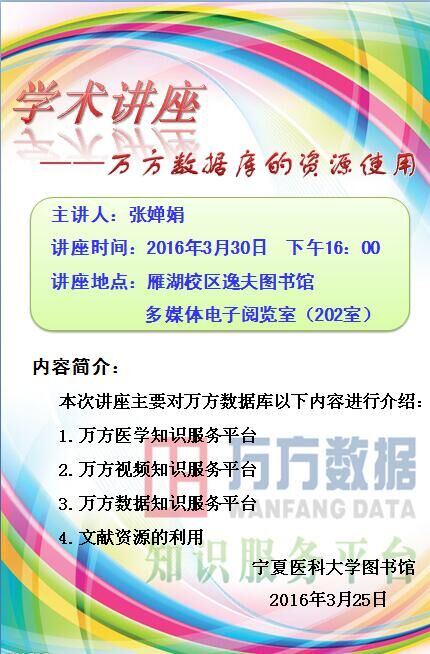 学术讲座:万方数据库的资源使用——张婵娟