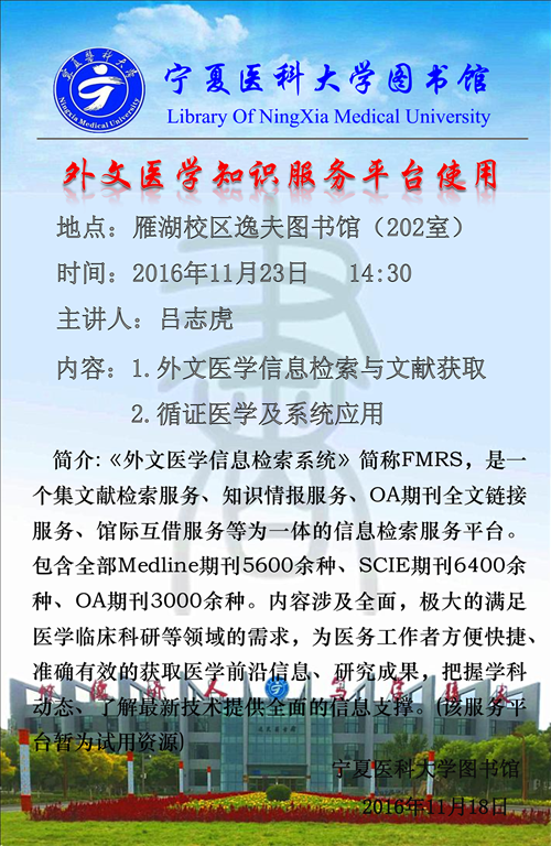 学术讲座:外文医学知识服务平台使用——吕志虎