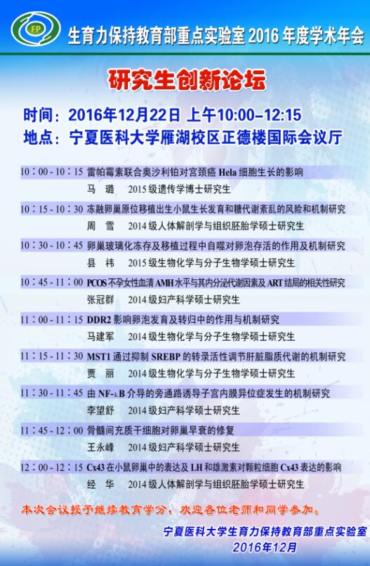 学术动态:生育力保持教育部重点实验室2016年度学术年会