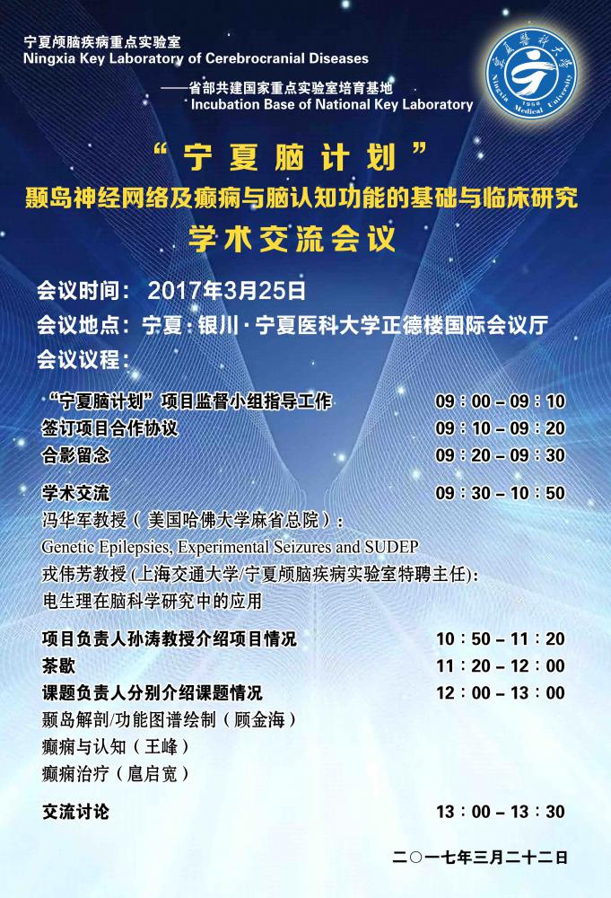 学术交流会:“宁夏脑计划”颞岛神经网络及癫痫与脑认知功能的基础与临床研究