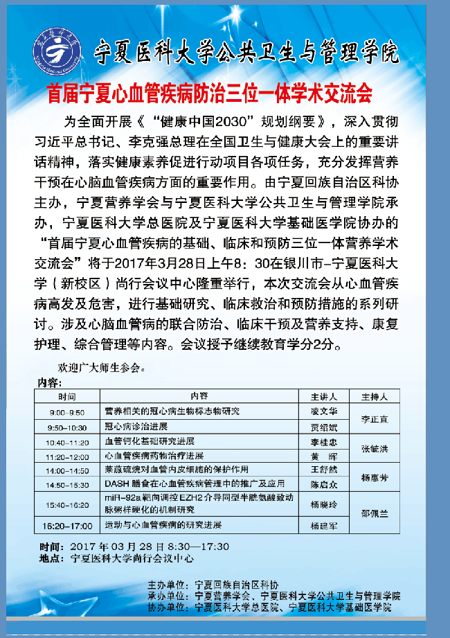 学术交流会:首届宁夏心血管疾病防治三位一体学术交流会