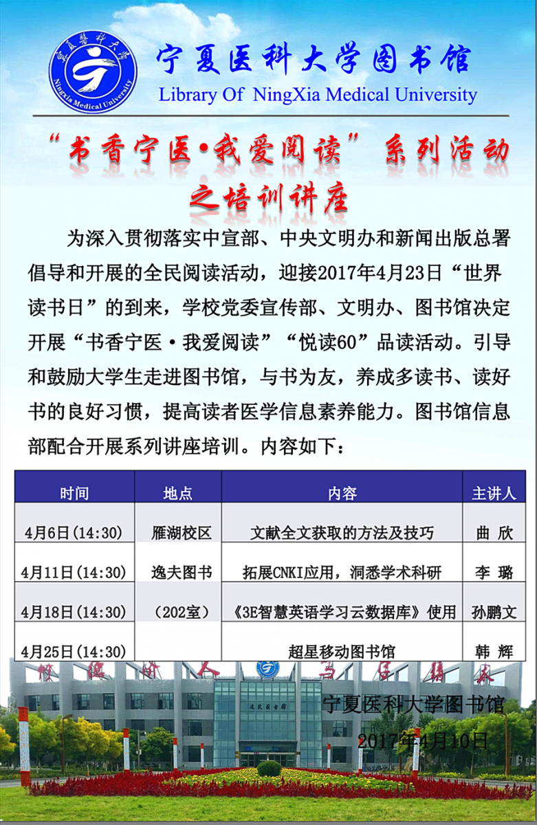 讲座:“书香宁医 我爱阅读”系列活动之培训讲座