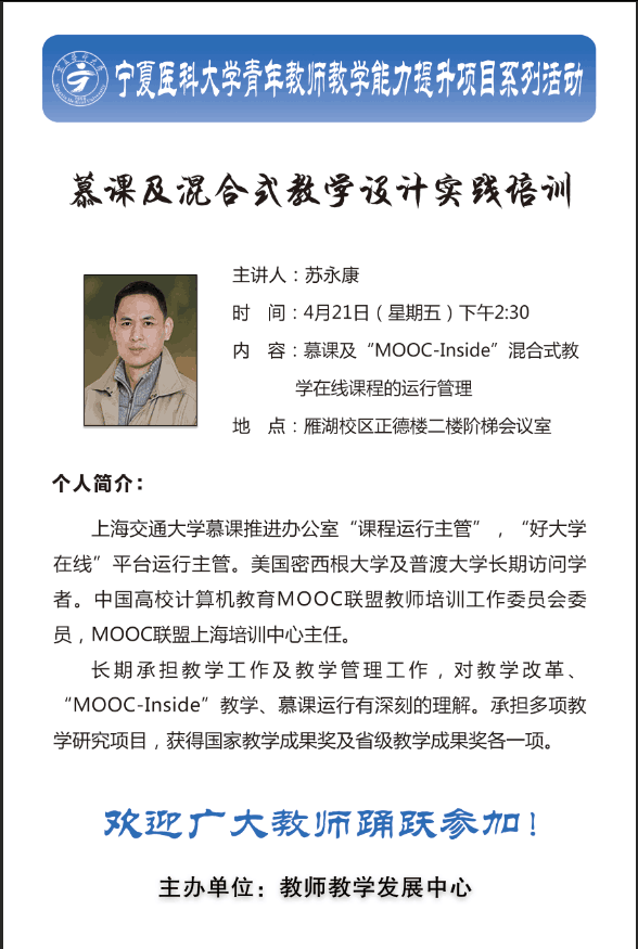 雁湖论坛:慕课及混合式教学设计实践培训——苏永康