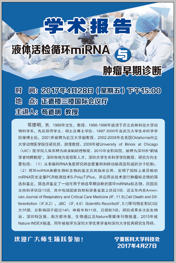 学术报告:液体活检循环miRNA与肿瘤早期诊断——苟德明