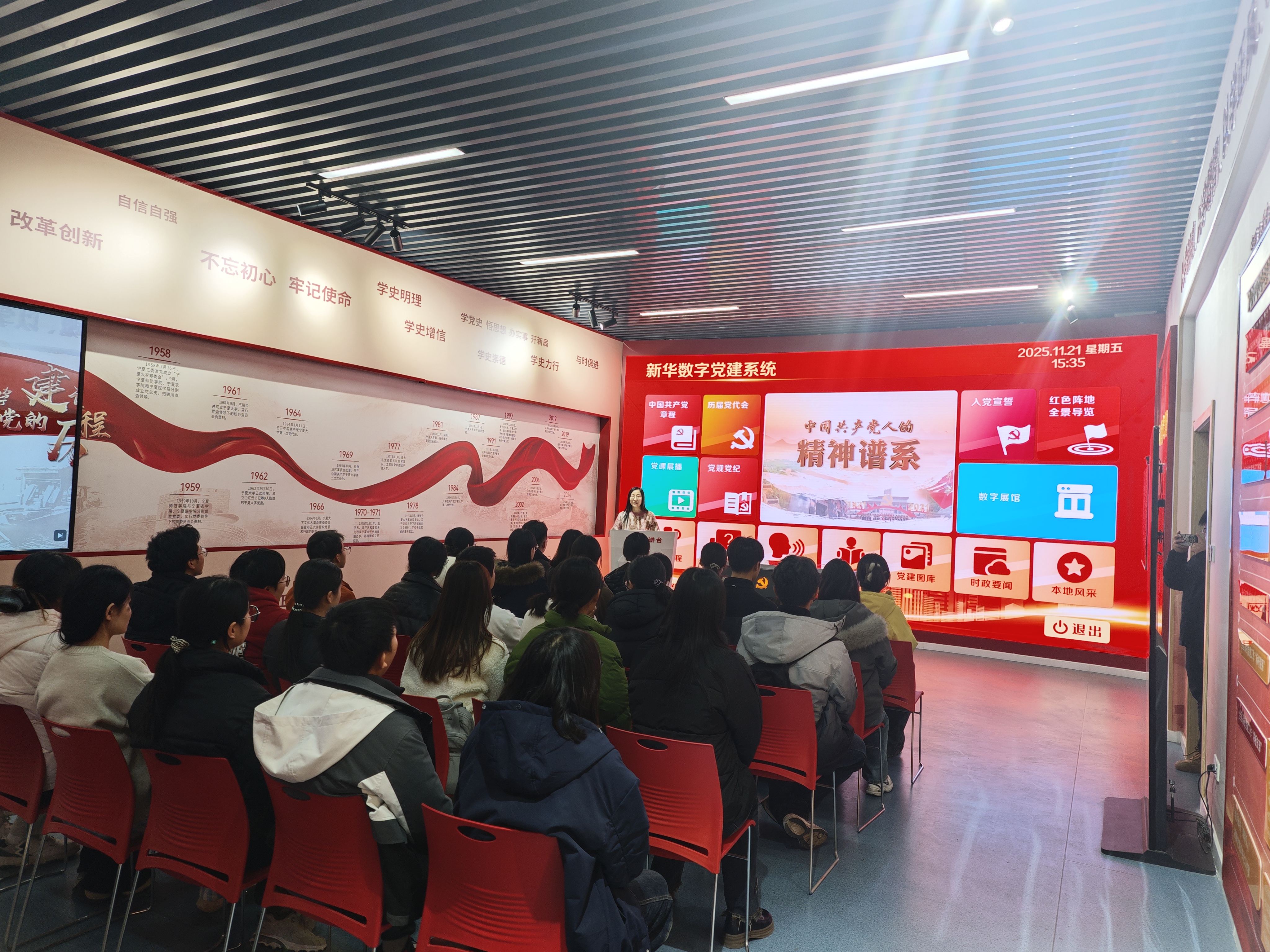 在宁夏大学哲学与艺术学部负责人的带领下,大家实地观摩了新闻传播学院演播大厅、3D制作室、舆情监测中心等九大特色教学与实践场所。学习观摩后,党支部书记张茜结合学习所见所感,以铸牢中华民族共同体意识为主题讲授了一堂微党课。