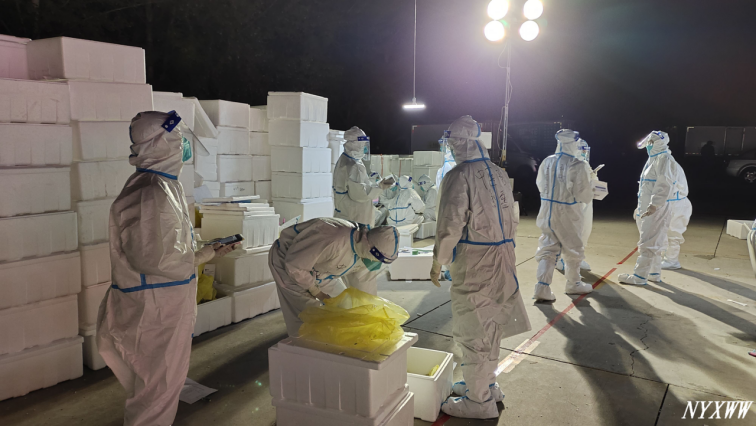 这一天,附属中医医院派出45人参加吴忠市第一轮大规模核酸检测标本封箱转运工作,鏖战至次日凌晨3点。