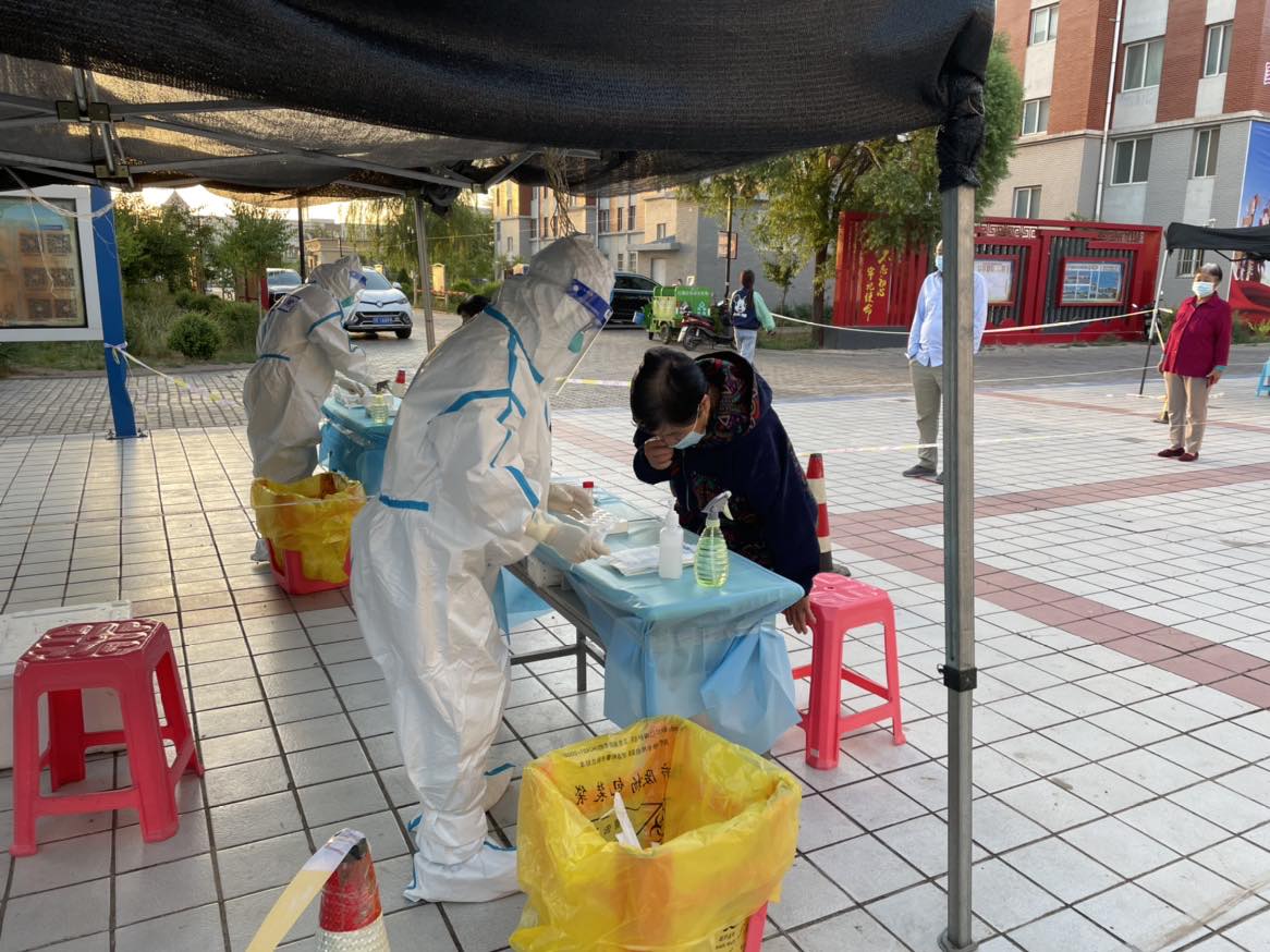 当队员们到达采样点位时,看到的是整齐有序的居民队伍,看到的是规范合理的采样场地。在信息录入时,无论是七八十岁的老人,还是带着几个幼童的主妇,市民们都不争不抢自觉排队。在采样试管不足等待补充时,大家也是不骄不躁、耐心等待。居民们亮出文明彰显素质,极大地提升了医护人员的采集效率。志愿者们积极维护场地秩序,解决居民在信息录入时出现的健康码显示不出、我的宁夏登录不上等问题。社区工作者主动为医护人员补充采样物资,制作遮光纸箱,帮助行动不便的老人、残疾人。在场的所有人都心往一处想,劲往一处使,又快又好地完成了全域核酸检测任务。在这场抗击疫情的长期战斗中,没有旁观者,医护人员、下沉机关干部、社区工作者、配合防疫的居民等,人人都是主角,我们同心同向,一起同行。
