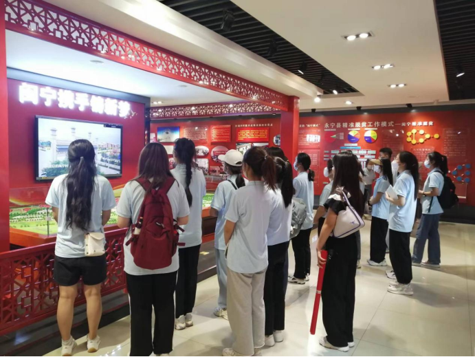 闽宁镇作为戈壁滩上的特色小镇,是福建和宁夏共同建设、以福建和宁夏两省区简称命名的生态移民点。实践团成员对闽宁镇史馆、巧媳妇扶贫车间、双孢菇种植基地以及赵鸿文化大院进行了参观学习,看到闽宁镇的居民生活环境从初代移民刚搬迁过来时的寸草不生、黄沙漫天,到今日的绿树环绕、红瓦白墙,深刻地感受到了移民们生活和环境的今昔巨变,也深入地了解了移民村闽宁镇在福建省的对口帮扶下,经历了从无到有、从穷到富、从干沙滩到金沙滩的历史巨变。