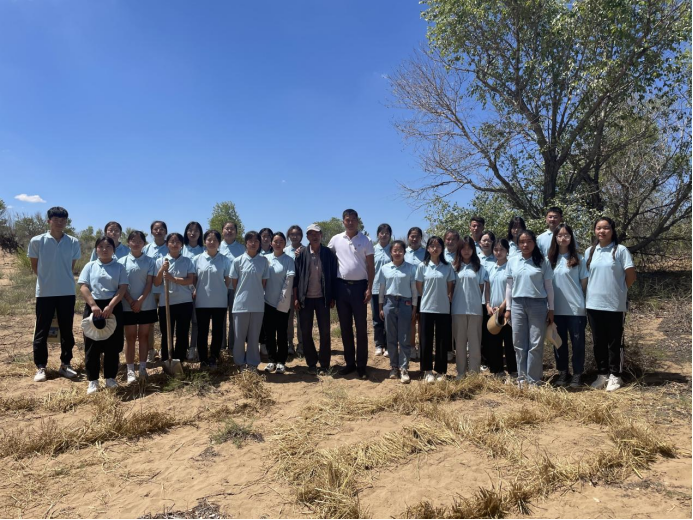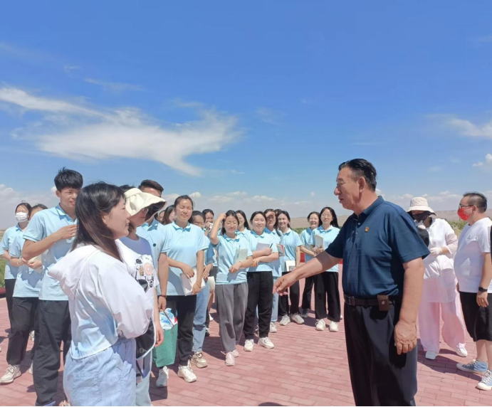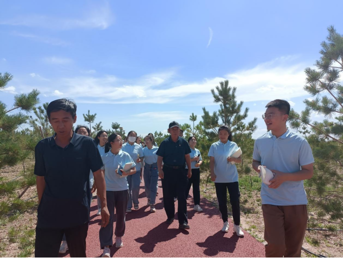 对宁夏灵武白芨滩国家自然保护区进行实地参观学习后,大家了解到这片位于毛乌素沙漠边缘的白芨滩在治沙英雄王有德带领下,营造防风固沙林63万亩,控制流沙近百万亩,有效地阻止了毛乌素沙漠南移和西扩,创造了世界治沙史上的奇迹,深刻体会了白芨滩人“宁可掉下10斤肉、不让生态落了后”的治沙精神。在宁夏银川河东国际机场东侧的“万亩沙漠绿洲” 再次见证了从沙漠到绿洲、沧海变桑田的奇迹,大家听治沙英雄王有德讲述了“六位一体”的防沙治沙新模式,从防沙治沙到人进沙退,始终坚持绿水青山就是金山银山的发展理念,实践团成员也被王英雄“一生只干一件事”、“生命不息、治沙不止”的精神所感动。