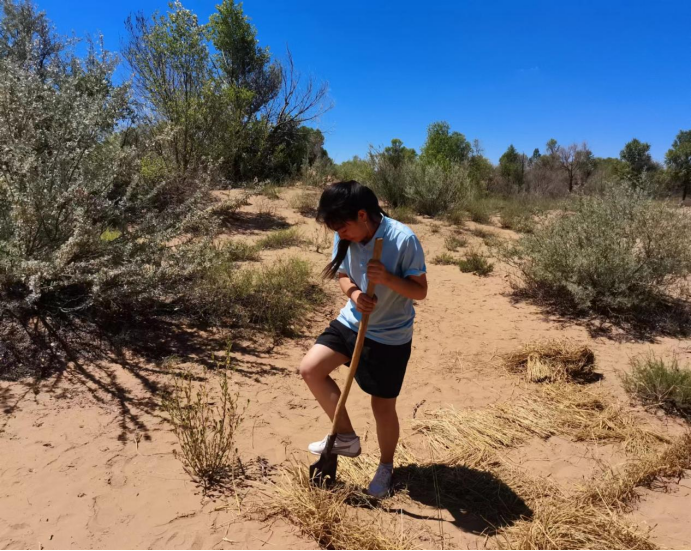 在哈巴胡国家级自然保护区,实践团成员不仅领略了哈巴胡的优美风景,也知晓了哈巴胡名字的来历及其保护的价值和意义,同时,大家在这里对治沙史上的奇迹“草方格治沙”的方法进行了学习并实践,受益匪浅。