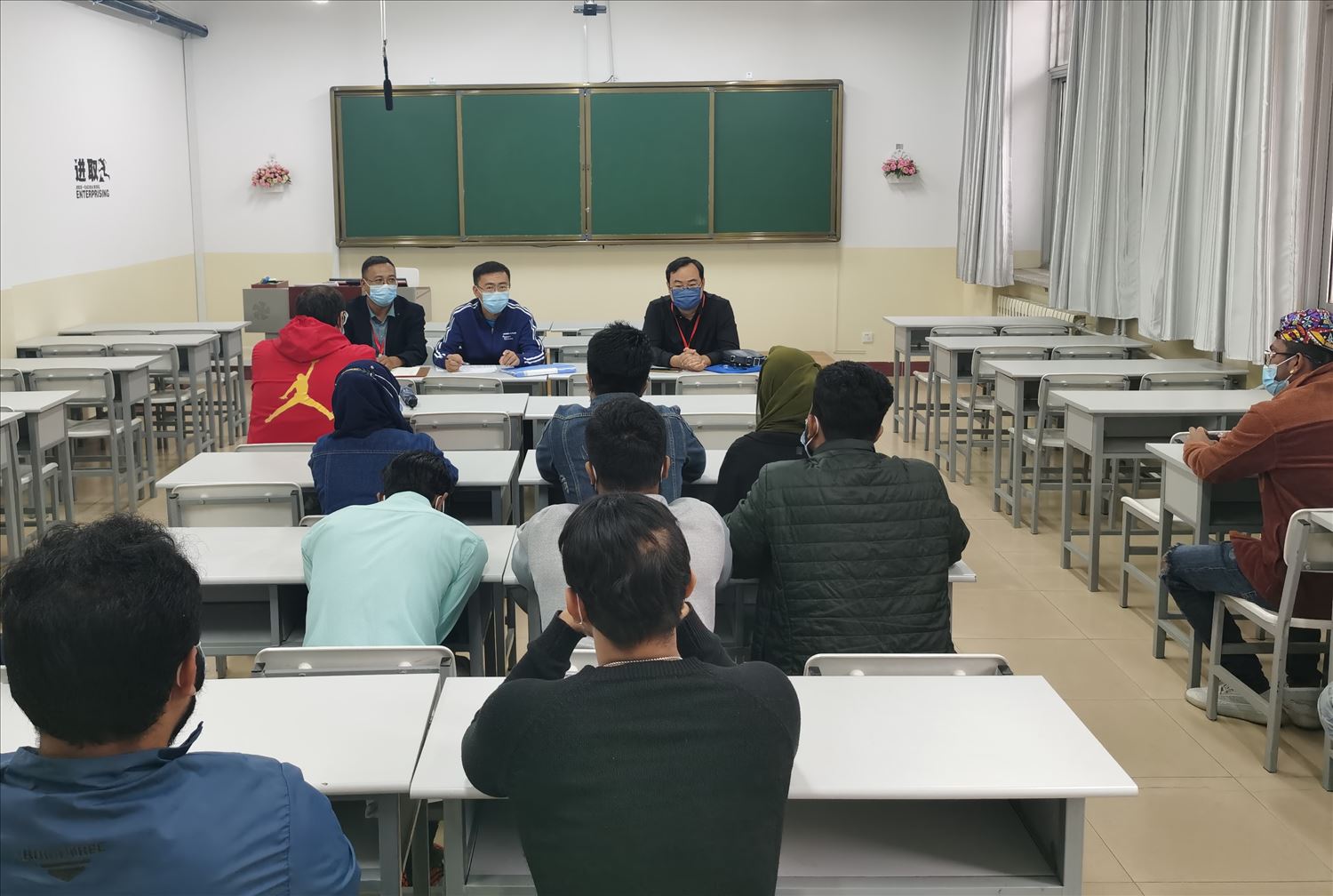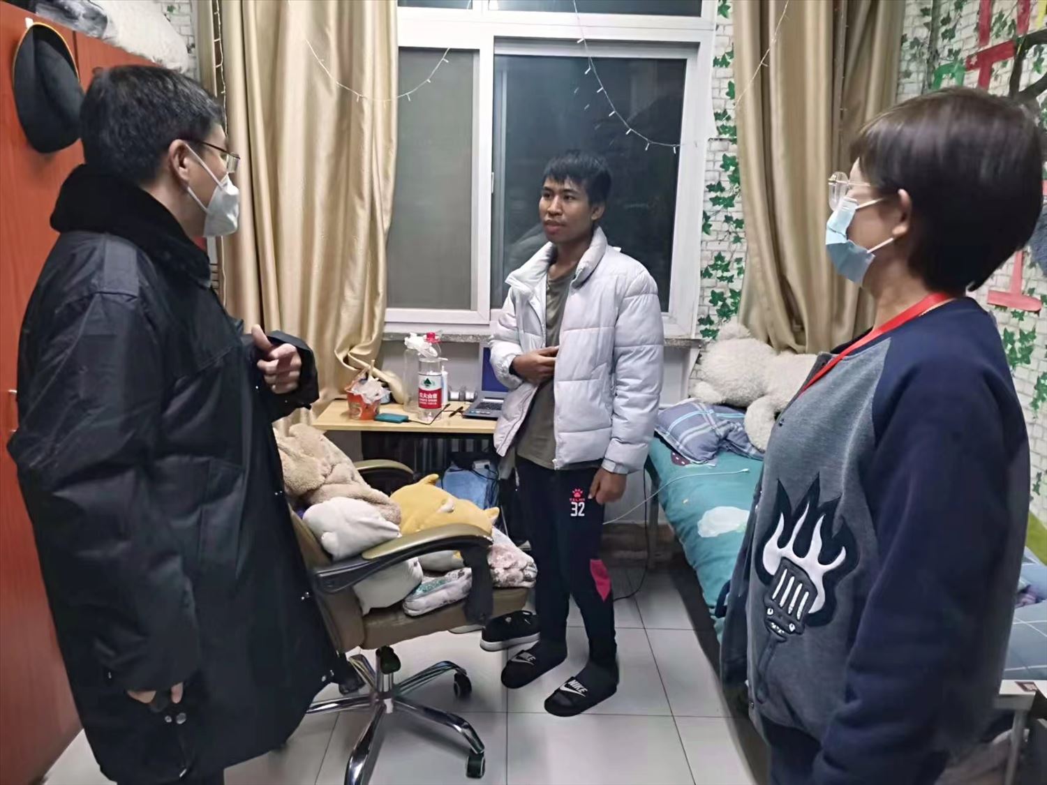 针对留学生这一特殊群体,在做好校内留学生疫情防控及管理服务工作的同时,单彬同志还积极开展各类特色留学生三全育人工作,发展组建留学生志愿服务队积极参与学校疫情防控志愿工作,联系自治区外办、教育厅、新华社等单位部门发布十大信誉留学生关于疫情防控、评说党的二十大等宣传报道和短视频10余条。组织学生参加自治区级汉语及中国文化活动10余人次。组织留学生参与各类校园活动20余场次,在增强留学生对中国疫情防控政策认知和理解的同时,也将三全育人理念深入学生心中,为学校疫情防控宣传工作营造了良好氛围。