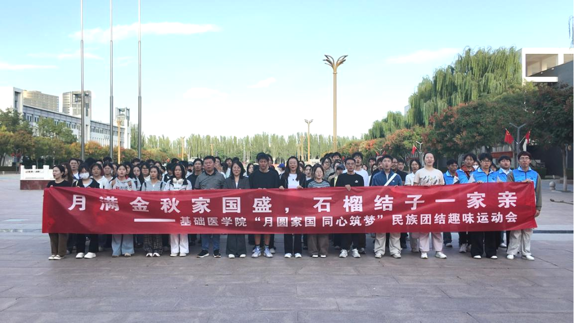 9月29日,基础医学院在雁湖校区正德广场举办“月圆家国 同心筑梦”民族团结趣味运动会。学院领导班子成员、教师代表、各年级本硕博学生200余人参加。