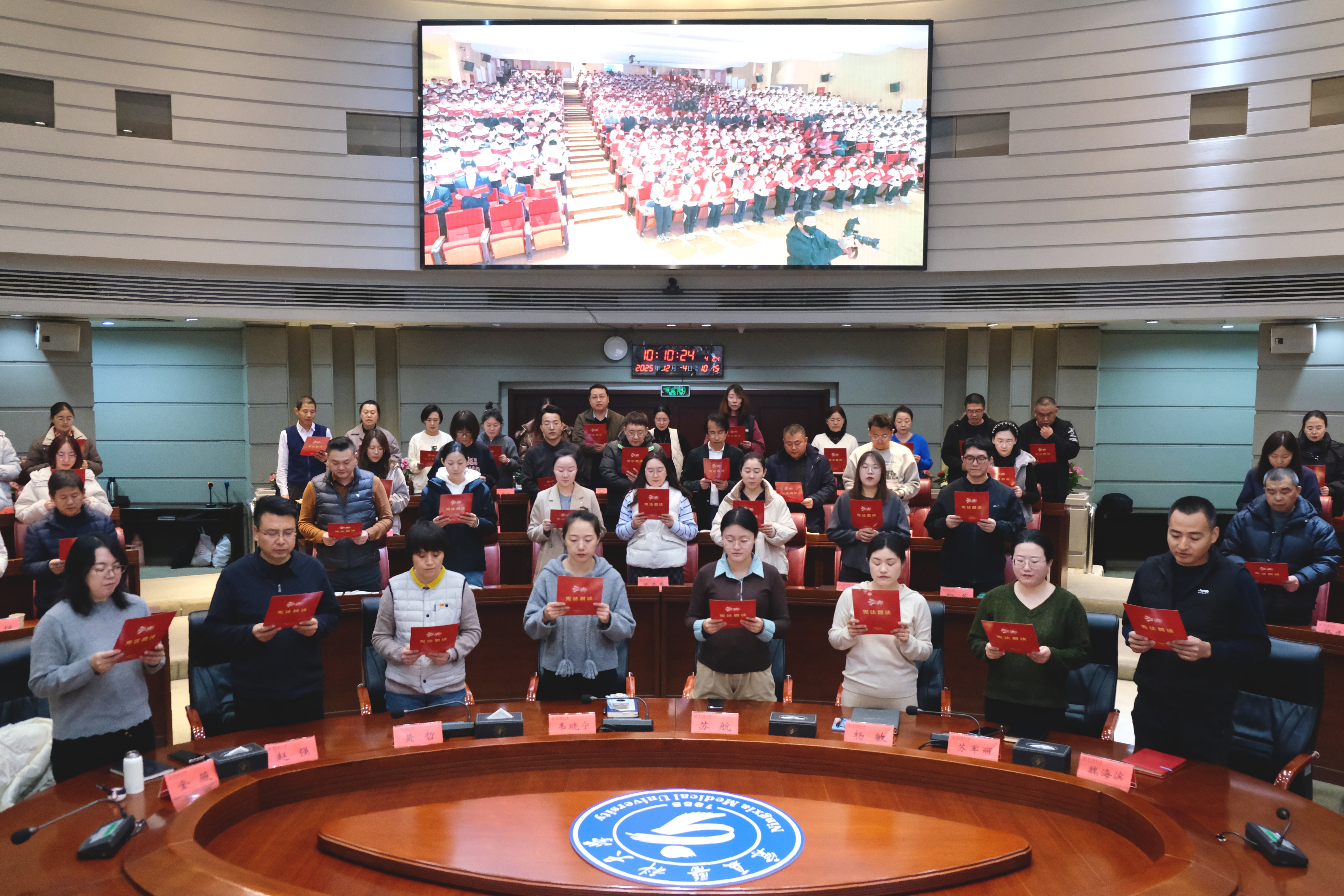 12月4日,在第十二个“国家宪法日”及第七个“宪法宣传周”期间,学校以“学习宣传贯彻习近平法治思想 推动宪法深入人心”为主题,在雁湖校区弘毅体育馆开展了2025年第13次党委理论学习中心组(扩大)学习会暨“12・4”国家宪法日集中宣传活动,以学促行、以宣践知,推动宪法精神在校园落地生根。学校党委副书记、校长姜怡邓,党委常委,相关部门(单位)负责人及师生员工代表参加。