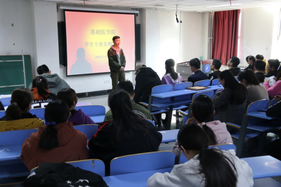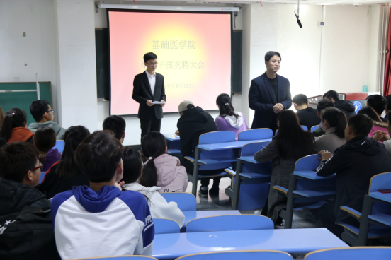 为了培养一批高素质学生会干部,进一步增强学生会的凝聚力,保障学院团总支、学生会工作的连续性,基础医学院于3月13日下午在厚生楼201教室开展第八届学生干部竞聘活动。承担此次活动的评委有基础医学院党委副书记马立虎、学生工作办公室主任杨兴莲、兼职辅导员陈志峰及前任学生会主席姚严翔和白文军,学院全体学生干部参加了此次活动。
