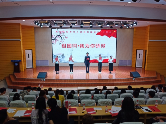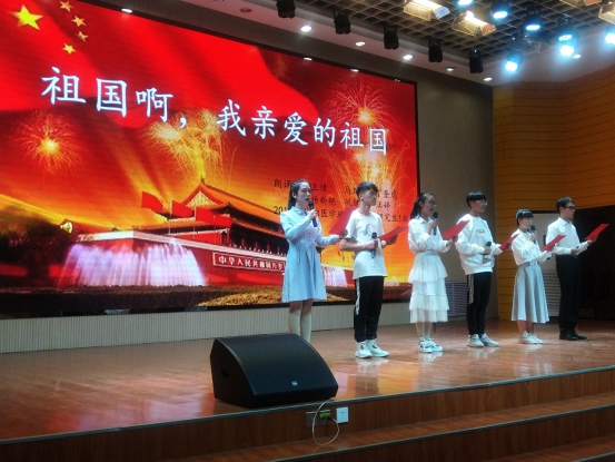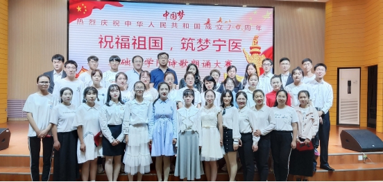 由54名同学组成的13支参赛队伍依次登台朗诵,选手们精神饱满、感情充沛,以满腔的热情表达了对祖国母亲70华诞的祝福和歌颂,充分展现了他们的普通话功底,抒发了浓浓的爱国之情。《我和我的祖国》、《我爱十月》、《传奇中国》、《新生的祖国》等朗诵篇章讲述了新中国在艰难之中的不断崛起,共产党带领人民从站起来到富起来到强起来的历史传奇。2019级研究生汤业珍等4人带来的原创作品《祝福祖国 圆梦宁医》更是真情实意的表达了对祖国母亲美好的祝愿。“弹唱着今日辉煌的旋律,七十载风雨兼程,我们一直都在路上”;“祝我祖国,繁荣昌盛;愿我宁医,桃李芬芳。”表达了宁医人不忘初心,牢记使命,奋进新时代,建设新宁医的决心。