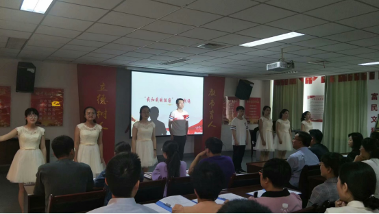 师生党员和入党积极分子分别朗诵《我的祖国》《我骄傲,我是中国人》《我爱我的祖国》三首歌颂祖国、歌颂党的诗歌,抒发了矢志不渝的爱国情怀,热情讴歌伟大的党、伟大的祖国和伟大的新时代,表达了对美好生活的热爱和向往,也表达了作为中国人的骄傲与自豪活动中还进行了“学习强国”挑战题的知识抢答,巩固了“学习强国”学习的同时,也检验了学习的效果。最后全体师生一起高唱《我和我的祖国》,抒发对伟大祖国无限热爱之情