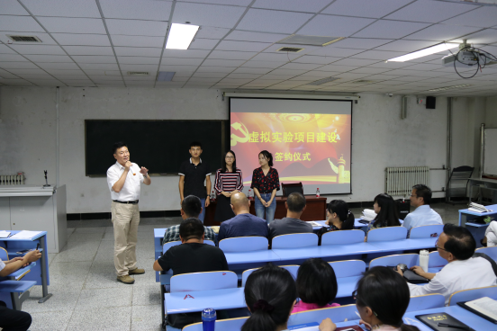 会上,学院领导组织大家学习相关文件精神,并就各自分管的教学、科研、研究生及学科建设工作进行了安排部署,明确目标、责任到人。在交流发言环节,罗彦老师和张鸣号老师结合自己教学和学习所见,谈了各自的体会与感悟,“学习与成长”、“奉献与敬业”、“付出与收获”始终贯穿整个发言,与会教职工很受教育。在学院新进职工做自我介绍后,进行了虚拟实验项目建设签约仪式。