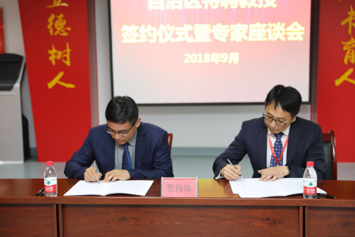 签约仪式上,基础医学院韩怀钦副院长宣读了自治区特聘教授批文,特聘香港中文大学赵晖教授为自治特聘教授。姜怡邓副校长代表学校与赵晖教授就学术交流、人才培养、科研合作签定了目标合同责任书,双方一致表示,希望以本次活动为契机,逐步建立合作交流机制,为共同推进基础医学院“一流”学科建设而发挥作用。