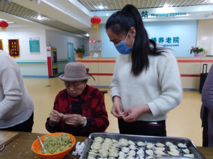 志愿者们一大早就来到康复中心,开始了包饺子的“大型”活动。大家分成了若干组,有人擀饺子皮,有人包饺子,大家忙的不亦乐乎。饺子包好后,志愿者们又陪着老人一起聊天,话家常,讲解冬季养生知识,使老人们在寒冷的冬日里都能够感受到节日的温暖和陪伴的幸福。