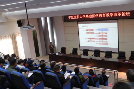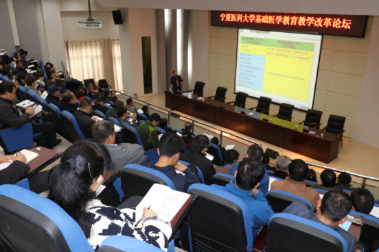 牛阳副校长在致辞中指出,基础医学肩负着培养临床、预防、护理等卫生事业人才的重担,是开展医学教学的重要前提,在医学生的人才培养中具有极其重要的作用。加强基础医学教学改革,强化基础医学与临床医学之间的联系,具有重要的现实意义。本届论坛的召开对于构建具有创新特色的医学教育体系、促进医学教育的良性发展具有重要的意义。随后,余华荣教授做了“医学整合课程背景下的教学运行及管理”的报告,汪思应教授做了“创新基础医学实验教学体系,重塑教师专业背景,提升医学生培养水平”的报告,龚永生教授做了“温州医科大学基础医学课程教学改革实践”的报告,三位专家立足于本校的教学与管理,介绍了他们成功的教学管理经验与教学改革措施,台下的教师认真聆听且与三位专家互动交流。