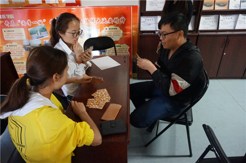 比赛开始后,主持人为参赛人员详细介绍了棋牌比赛的规则及注意事项。比赛项目主要包括:象棋、跳棋、五子棋和斗地主。此次活动,老师、同学们积极参与。在活动的过程中,各个选手表现积极活跃,参加五子棋的选手比赛时,始终坚信稳中求胜;斗地主选手在比赛过程中,体现出了十足的团结精神。在这场没有硝烟的战争中,选手们持以交流、切磋棋艺,牌艺的心态。沉着应对,运筹帷幄,赛出了风采,赛出了水平。