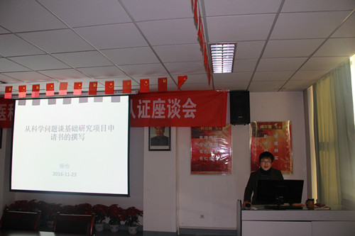 随后,学院杨怡教授做了题为“从科学问题谈基础研究项目申请书的撰写”的讲座。她结合自身实例,深入浅出的给大家讲授了如何撰写国家自然科学基金申请书。提到首先要凝练科学问题,其次从文献中、实验中和学科交叉过程中选题和寻找创新性,研究内容和研究方案的确定以及研究目标和关键问题如何解决,报告实用性强,给在坐的老师很大的启示,讲座中老师们与杨怡教授就申报中的问题做了很好的交流。相信此次会议定能激发大家申报2017年国家自然科学基金的热情,推动科研工作的进一步发展。