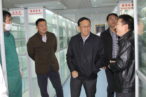 孙涛校长一行先后到基础医学院厚生楼各学系、科研平台、实验中心和解剖楼生命科学馆进行检查,在检查过程中,学校领导对我院专业认证前期准备工作给予肯定,对临床医学专业认证文化氛围营造、查阅资料、现场观摩、标识、环境卫生等准备工作进行了检查并提出整改意见。