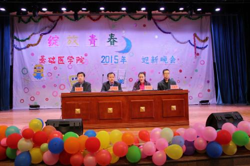 2015年10月26日晚, “基础医学院2014—2015学年优秀学生表彰暨‘绽放青春’迎新生晚会” 在双怡校区大学生活动中心成功举办。学院领导及部分教师代表应邀出席,全体研究生及本科生参加了本次晚会。
