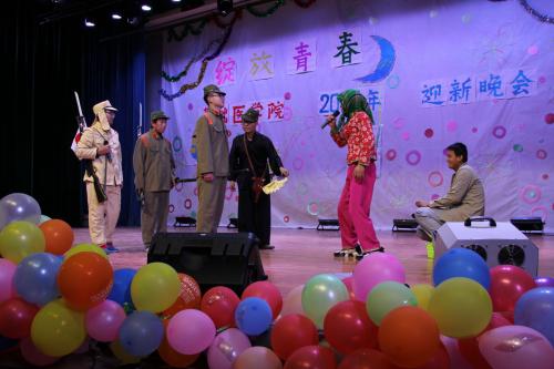 表彰大会结束后,迎新晚会在2015级研究生们一段活力四射的舞蹈《roly poly》中拉开序幕。整场晚会节目精彩纷呈,亮点频现。一首《兄弟抱一下》的男生二重唱让我们感受了大学中兄弟间的温情,更有幽默搞笑的“穿越”剧《鬼子进村》让观众们忍俊不禁,王琦老师的陶笛独奏《绿野仙踪》令观众们如痴如醉,伴歌伴舞的《水调歌头》充满古风韵味让整场晚会更是到了高潮,更有唯美的合唱《小樱花》、充满朝气的音乐剧《宁医大的日子》和李老师的蒙古语歌曲等为晚会增添了活力。风格各异的精彩节目给广大师生带来一席视觉和听觉上的盛宴,从中穿插着妙趣横生的小游戏更是把整场晚会的气氛烘托到了最高点。整场晚会笑声不断,掌声连连,台上台下,互动积极。平日严谨教学的老师们也在游戏中和学生们完全打成了一片。最后,伴随着一首洋溢着青春色彩的合唱《栀子花开》,迎新晚会在大家的依依不舍中画上了圆满的句号。
