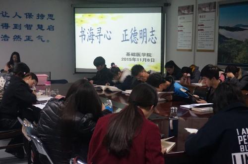 书是人类的朋友,书是人类进步的阶梯!读书使人明智、明理,使人聪慧、善辩,使人文明、高尚。为了进一步提升全院学生的人文素养, 11月8日晚基础医学院在厚生楼“书香学院”拉开了“书海寻心,正德明智”读书活动的序幕。旨在激发学生读书的兴趣,养成热爱书籍,博览群书的好习惯。