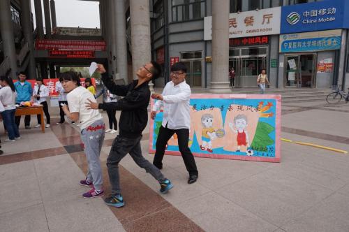 为响应学校团委“走下网络,走出宿舍,走向操场”的活动号召,基础医学院5月5日在雁湖校区食堂广场开展“运动展活力,青春现风采”团日活动。辅导员和2013级生物技术班全体同学参加了本次活动。