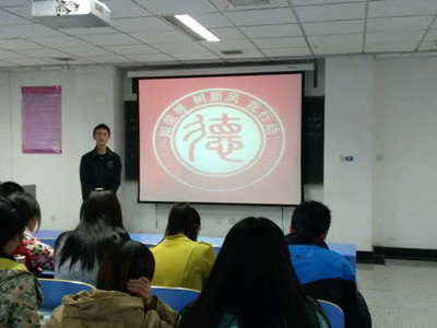 品悟道德力量,升华人生境界。此次大学生道德讲堂以公民基本道德准则为理论指导,以真实道德情景和身边大学生真实道德故事为蓝本,以“唱德、立德、明德、品德、传德、润德”为德育理念,以“诚实做人,诚信做事”为主题,严格按照“唱歌曲、学模范、讲故事、诵经典、发善心”五个环节的活动程序展开,通过全体人员齐唱《歌声与微笑》、分享十大信誉自强之星获得者的青春奋斗故事、讲述“小悦悦”事件以及剖析“徐才厚等官员的贪污腐败”等现象,引导同学们树立正确的人生观和价值观,鼓励同学们勤于学习、善于创造、甘于奉献,最终成为有理想、有文化、有纪律的社会主义建设者,收到了较好的育人效果。最后,全体同学跟随主持人诵读了“老吾老以及人之老,幼吾幼以及人之幼”道德经典。
