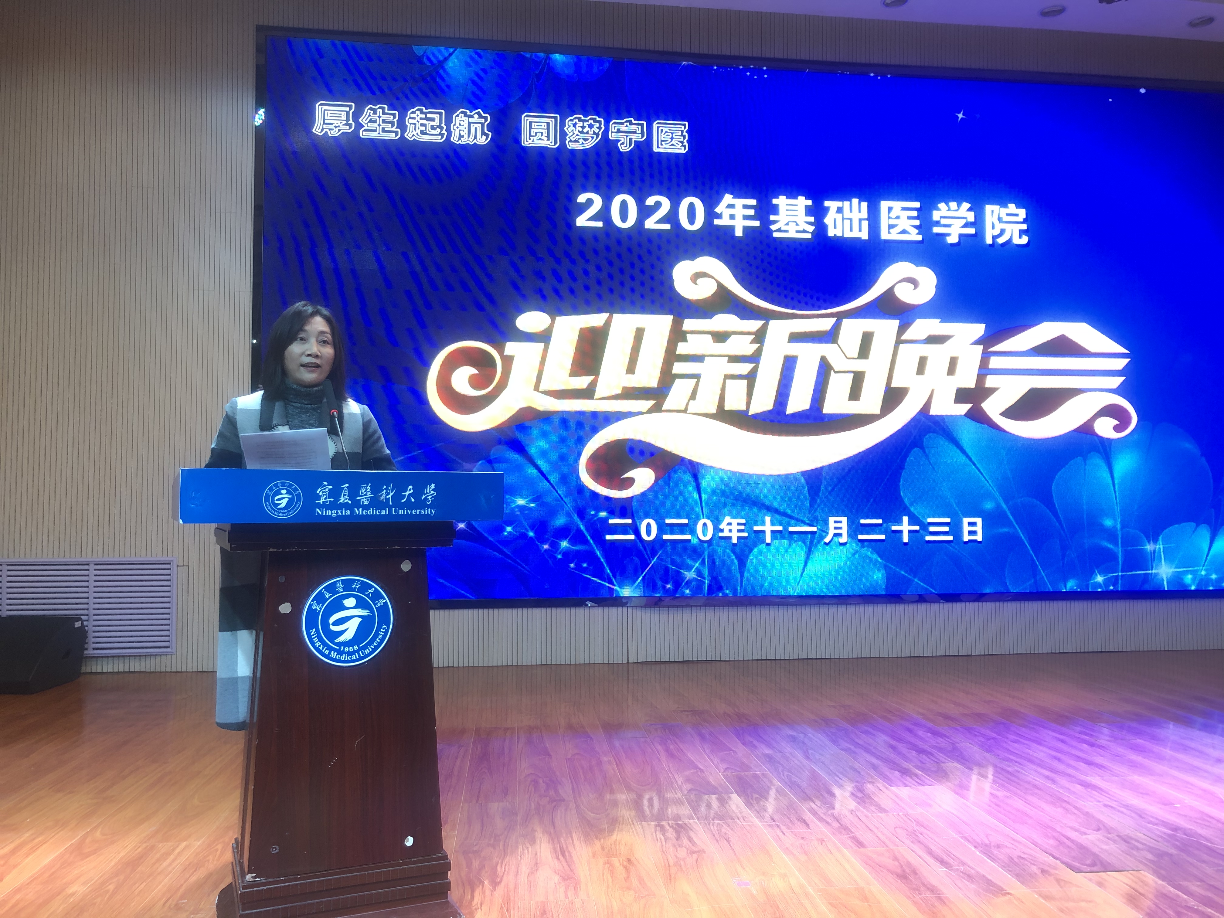 2020年11月23日晚,基础医学院2020年“厚生起航,圆梦宁医”迎新晚会在雁湖校区应谦楼启思学术报告厅举行。学院全体党政领导与师生代表共计300余人观看了晚会。