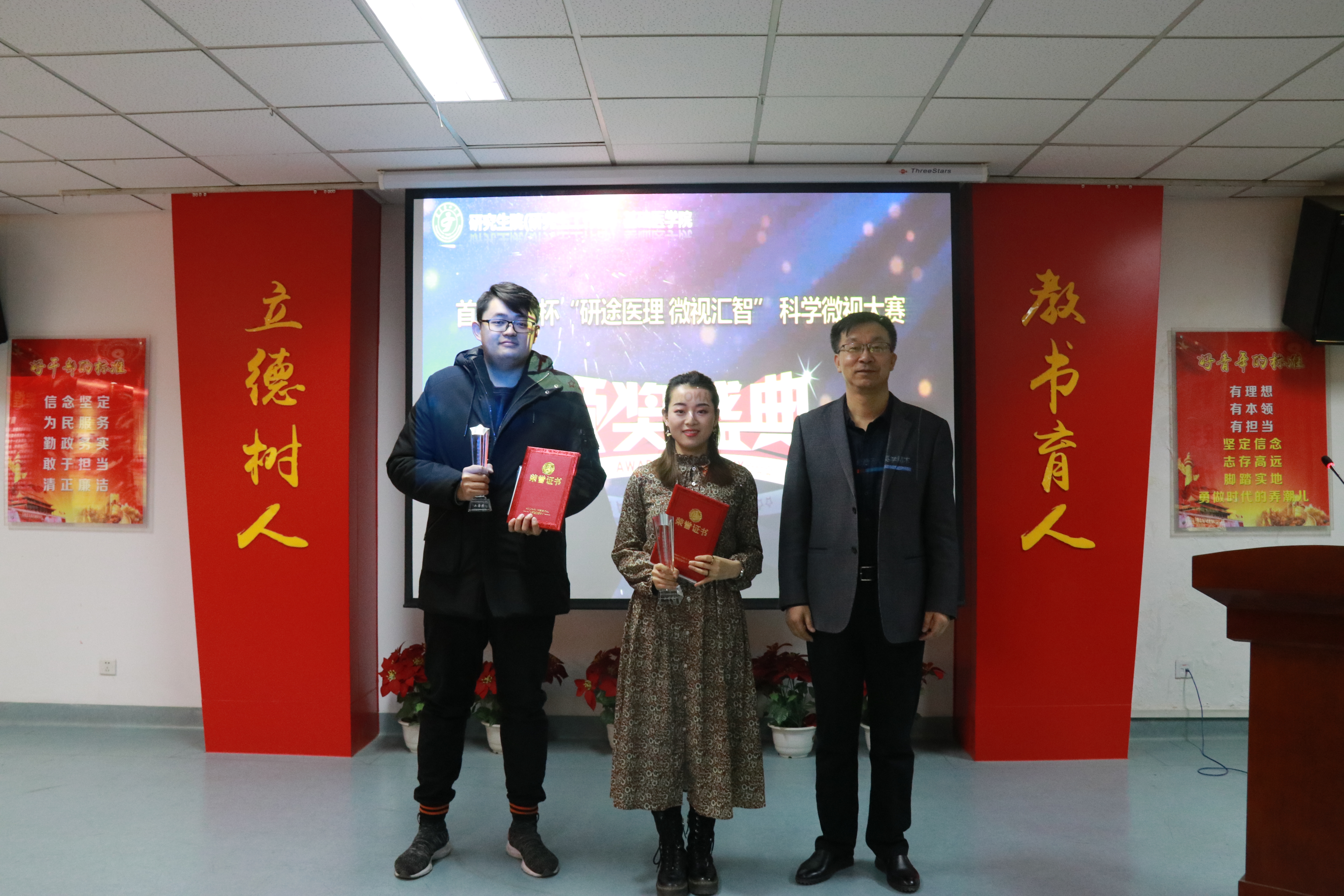 2021年1月15日上午,澳门十大信誉好的网站首届厚生杯“研途医理 微视汇智”研究生科学微视频大赛颁奖典礼在厚生楼党员之家举办。基础医学院班子成员出席颁奖典礼。颁奖活动由学院侯绍章副院长主持。