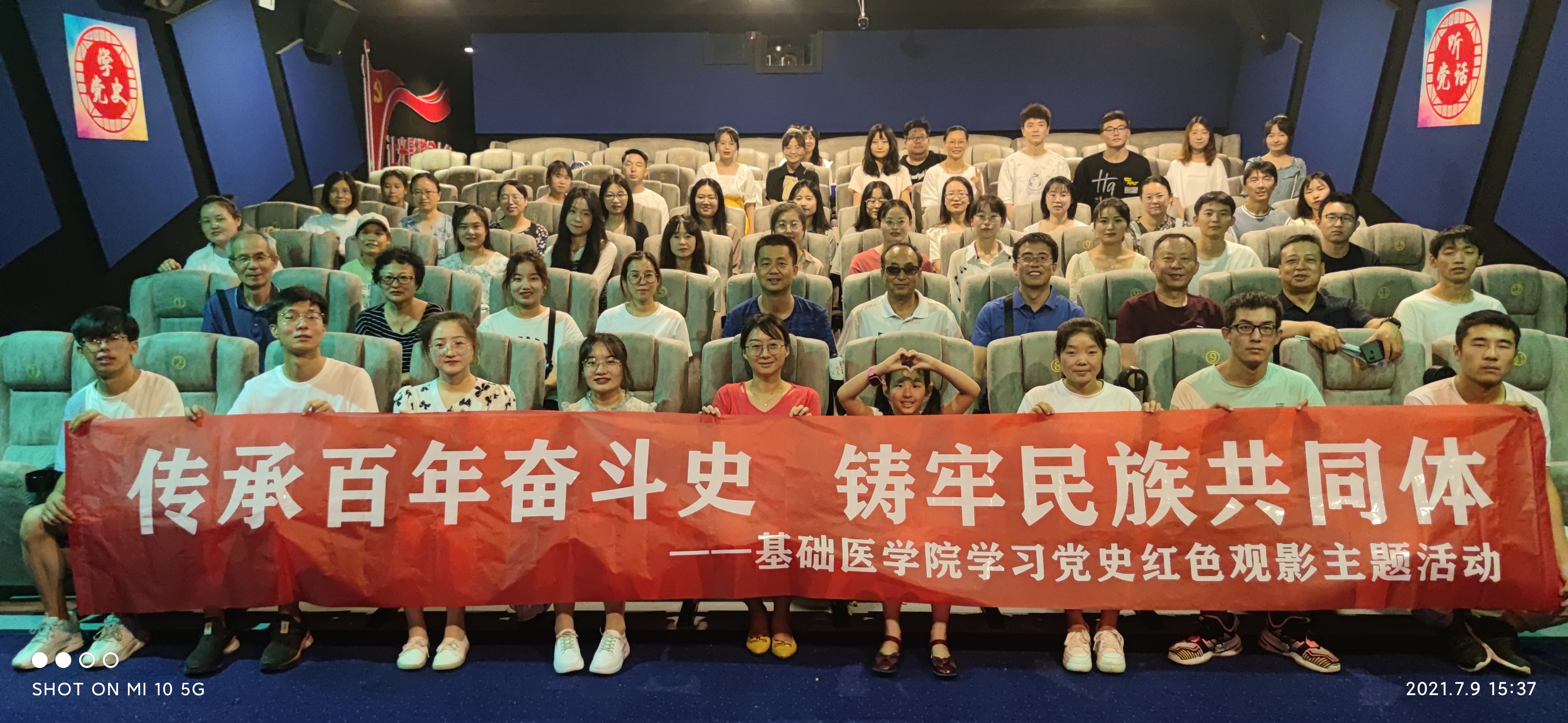 丰富党史学习教育形式,引导师生走进历史、触摸历史、感悟历史,促使师生把党史学习教育认知成果向实践拓展,向岗位延伸,使之内化于心、外化于行。7月9日下午,基础医学院党委组织师生党员及入党积极分子在金凤凰电影院红色主题厅集体观看庆祝建党100周年专题影片《1921》。