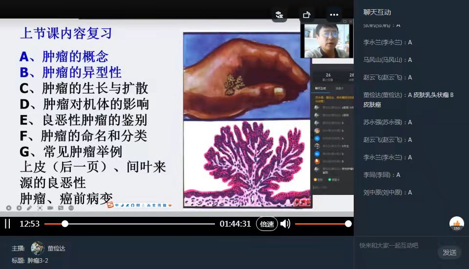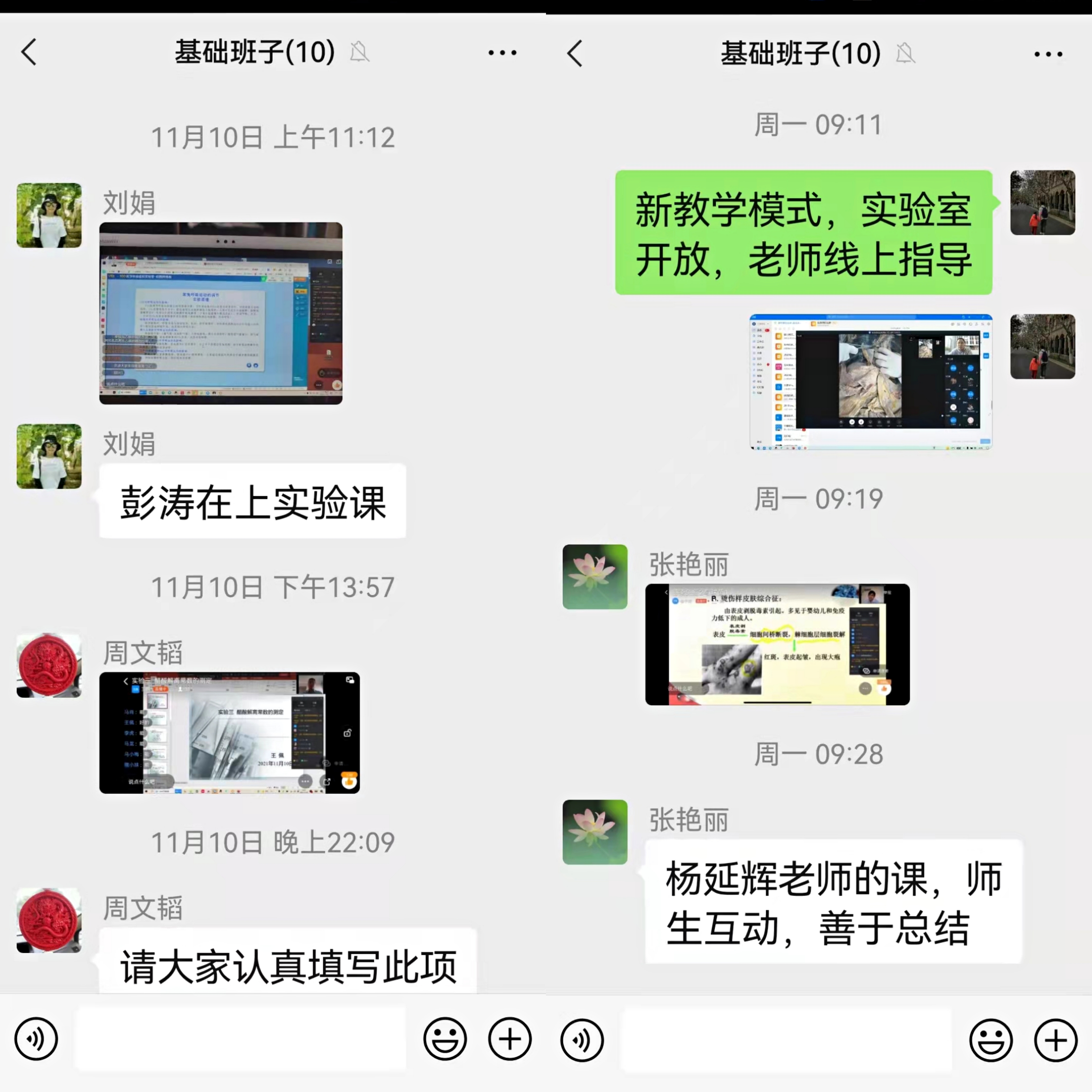 基础医学院本学期承担本专科生课程累计62门,截止11月20日,线上教学任务学时达两千二百多,其中,线上实践教学学时占20%左右。全体师生再次搭起空中课堂,积极行动、快速动员、克服困难,学院全体领导班子、各学系主任闻令而动,共谋划,同响应,使得线上教学秩序有条不紊,教学质量稳中有升:一、凝心聚力,统筹行动:学院及各学系主任及时召开线上教学例会,部署线上教学工作;二、充分发挥基层教学组织示范引领作用,会同教发中心开展全校线上教学培训,得到全校教师认可;三、各学系通过线上集体备课与试讲的形式,共同探讨线上教学授课技巧,为即将授课的各位教师提供线上教学思路与方法;四、授课教师积极将抗疫课程思政内容融入课堂教学,增加学生的自信心,激发学生的学习动力,增强学生的责任感和使命感;五、根据线上教学的特殊性,教师充分准备在线教学资源,不断加强线上互动教学;六、利用国家级虚拟仿真实验建设项目优势,充实虚拟仿真实验课程,助力实践教学........通过对线上教学的周密安排,学院的每一位授课老师都做了充分的准备,保证了疫情期间线上教学不降“调”,且内容丰富,形式多样,同时注重学生学习的体验感,视频教学中灿烂的笑容拉近了与学生的距离,充分发挥较强的课堂组织能力,提升线上教学的趣味性,深受学生喜爱。此外,校领导和教学督导组成员通过“线上抽巡”方式及时关注教学动态,深入线上课堂,对我院部分课程进行听课评课和跟踪督导,给予了充分肯定,同时提出反馈意见,确保有序、有效、高质量线上教学。