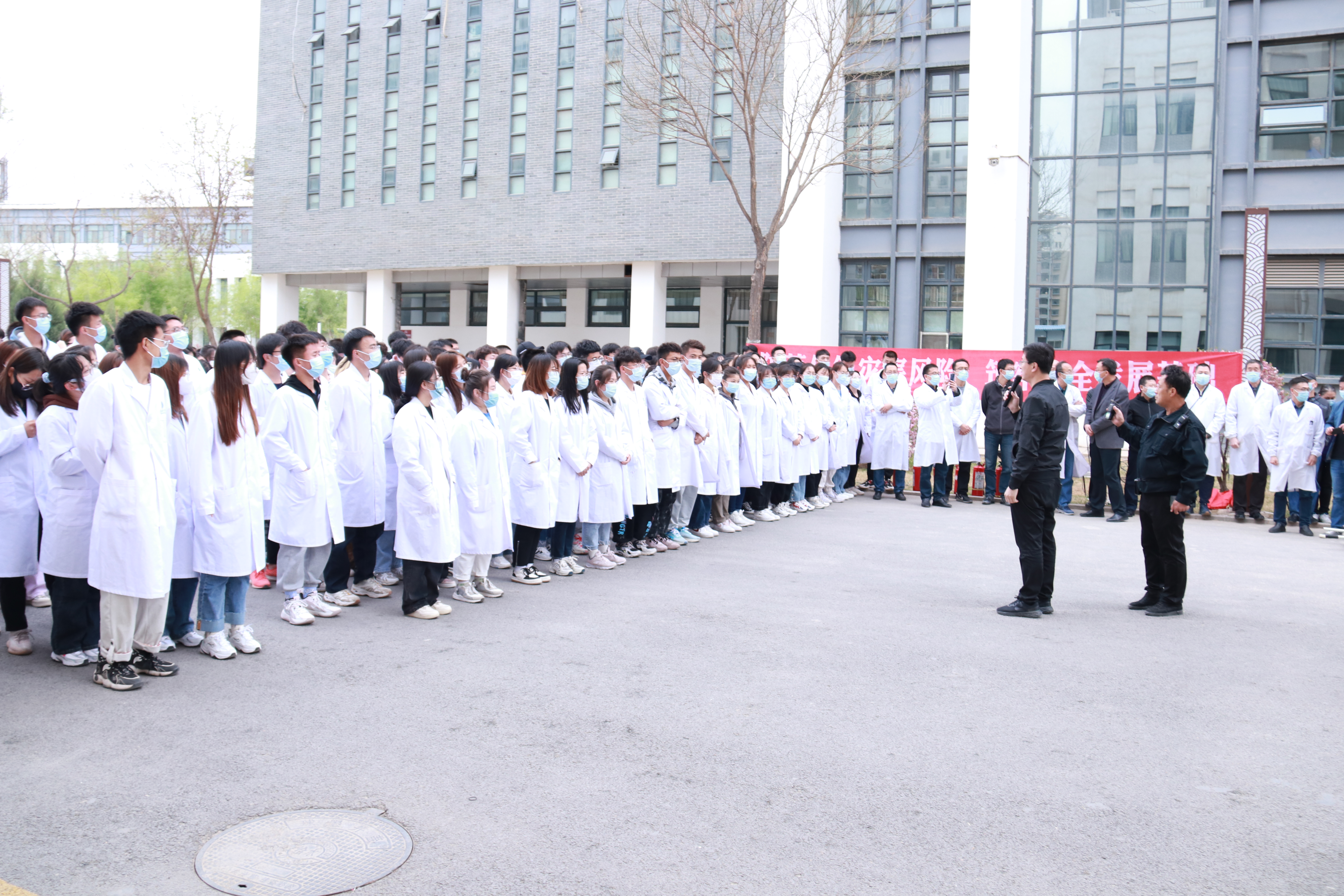 在第七个国家安全教育日来临之际,为进一步增强广大师生维护国家安全意识和能力,铸牢校园安全防线,确保学校安全稳定,4月15日下午,基础医学院人体解剖与组织胚胎学系党支部联合学校保卫处、中房物业公司,在新解剖楼开展了“消防安全、人人有责”主题党日暨消防应急演练活动。基础医学院党委书记周文韬、学校教学质控与评估中心主任马立虎和300余名师生一起参与了安全演练活动。