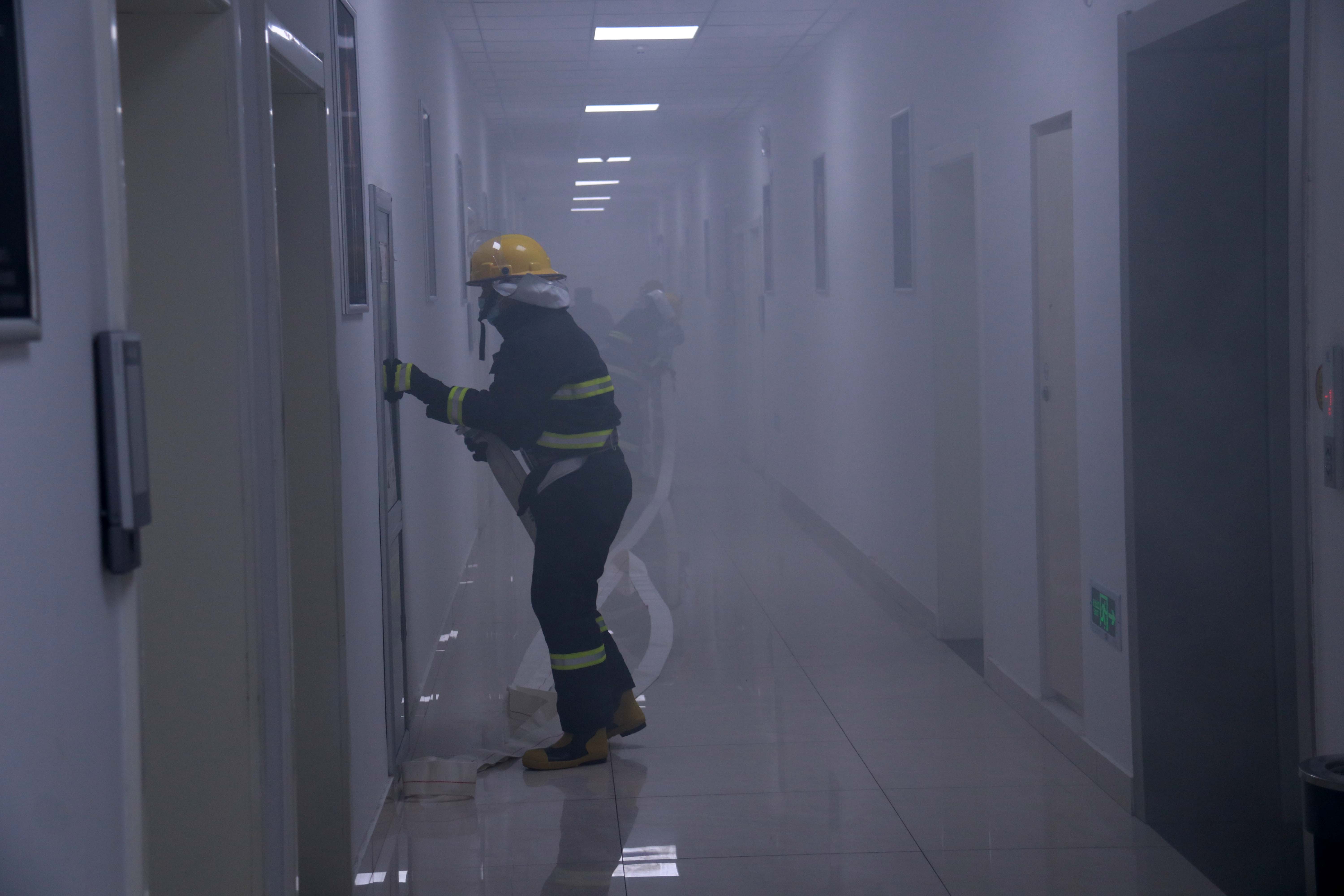 活动模拟“实验室突发火灾”,接到火灾警报后,老师组织正在上课的学生有序从安全通道进行疏散。随后学校急救人员、保卫处应急人员和中房公司消防队及时赶到,对火情进行有效处置,消防队对楼内被困人员进行了营救。整个应急疏散演练过程,参与各方配合井然有序。演练完成后集中对师生进行了消防安全知识培训,师生对灭火器和灭火毯进行实际操作体验。