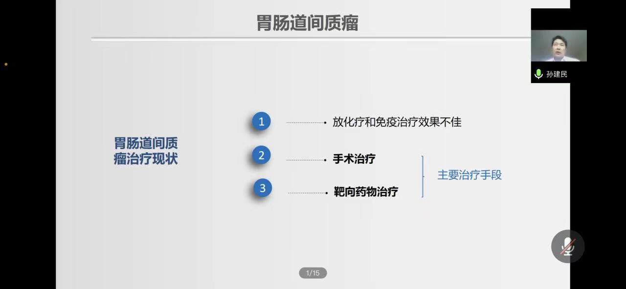 孙建民教授以科研项目选题初期的考量因素、所在研究领域与课题的价值以及自我评估课题学术价值、应用价值及对行业的影响力为切入点,以胃肠道间质瘤目前的临床诊疗手段及相关研究为例,深入揭示了治疗胃肠道间质瘤中面临的主要问题——靶向治疗耐药,并分享了在该课题设计中遇到的问题、思路以及突破口,确认了FHL2的功能、机制以及对GISTs的影响,将所有研究思路以及内容有机串联成一个完整的科研“故事”。讲座学术氛围浓厚,会后师生积极与孙教授进行“云”互动,精彩的报告开阔了师生视野,为大家课题研究提供了有益借鉴。