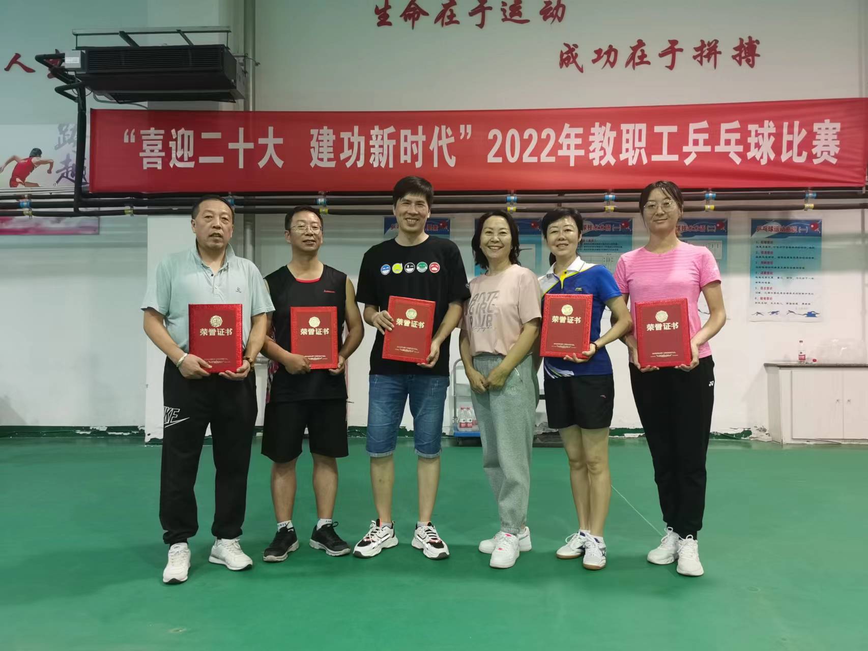 9月18日,学校工会主办、教职工乒乓球协会承办的“喜迎二十大 建功新时代”教职工乒乓球比赛在双怡校区弘健体育馆举行。学校各分工会组成的8支队伍,30余人参与了男女混合团体、男子单打、女子单打三个项目的激烈角逐。经过一天的激烈比赛 ,基础医学院分工会和实验动物中心分工会联队获得混合团体比赛第一名;杨继华获得女子单打第一名,李江男子单打并列第三名,李菲女子单打并列第三名的好成绩。参赛选手展现了基础人昂扬奋进的精神面貌,为构建文明和谐校园建设助力。