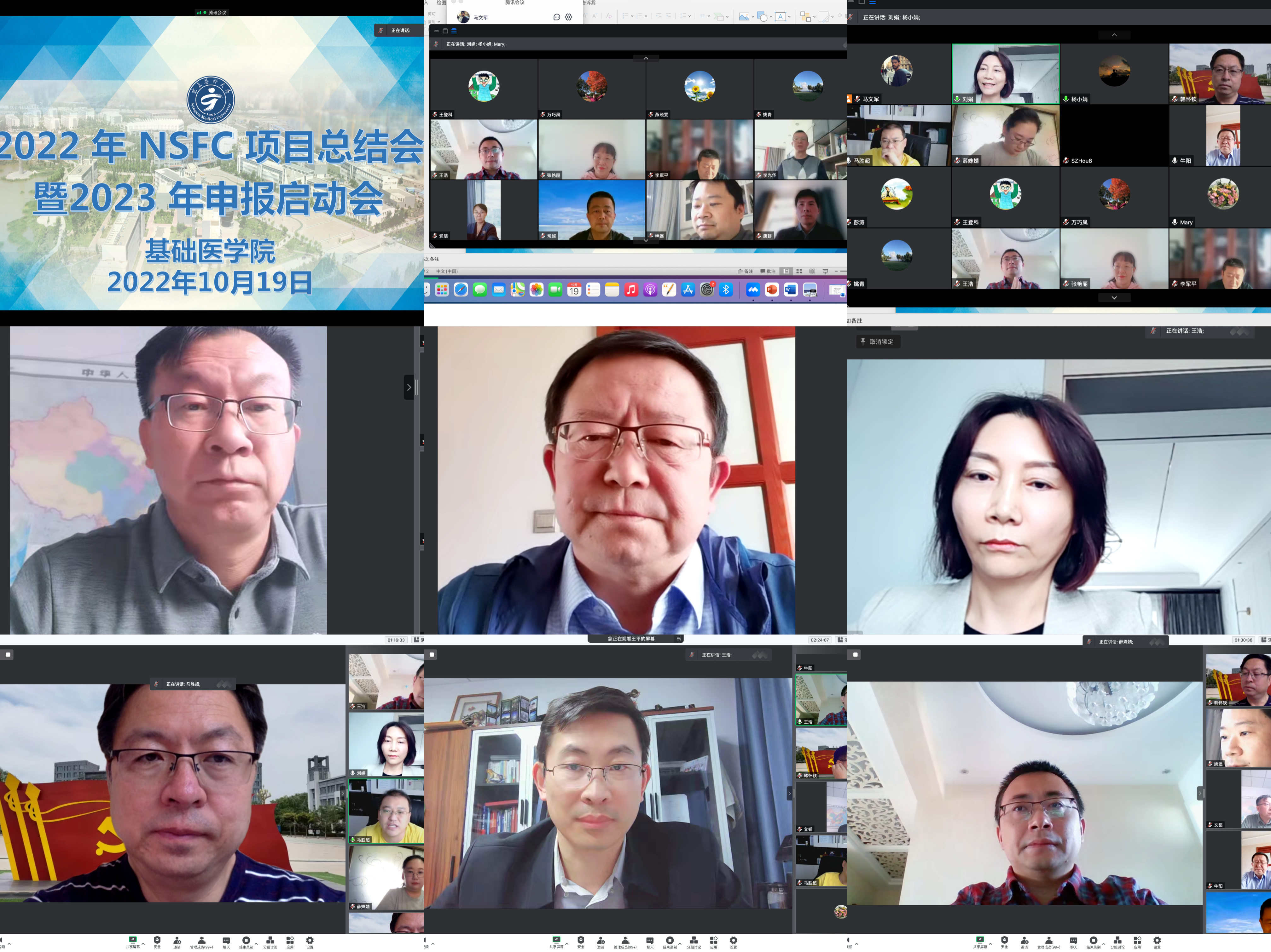 为全面贯彻党的二十大精神,推动学科建设和科研创新工作。10月19日下午,基础医学院召开2022年国家自然科学基金(NSFC)项目总结会暨2023年申报启动会。学校党委副书记牛阳、科技处处长韩怀钦,学院领导班子和全体教师及博士研究生等300余人通过线上会议方式参加了会议。同济大学医学院副院长、长江学者王平教授应邀参加并做专题讲座。基础医学院院长刘娟教授主持了会议。