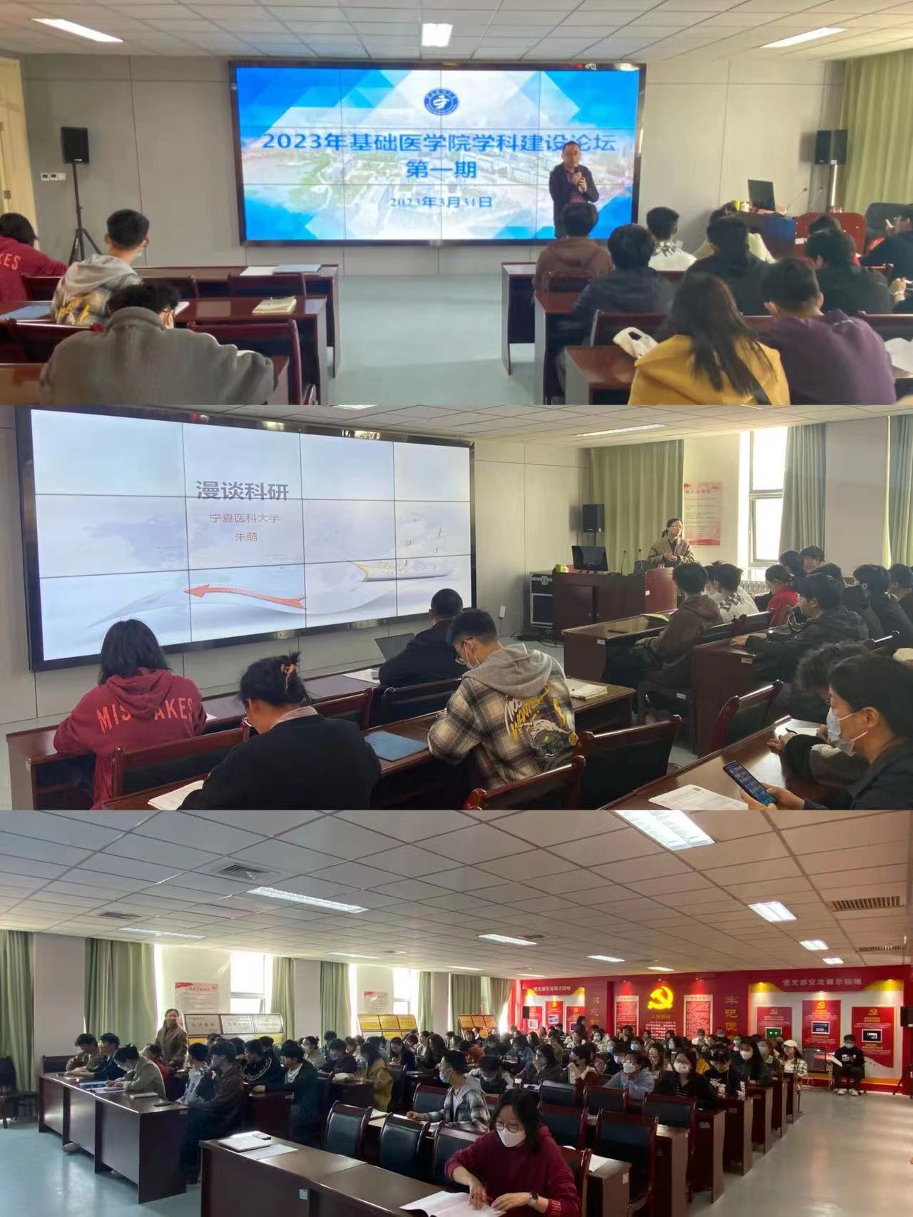 3月31日上午,基础医学院2023年学科建设论坛第一期在厚生楼党员之家举行。病理学系朱萌副教授作了《漫谈科研》的专题讲座,100余名师生参加了讲座,讲座由副院长王浩主持。