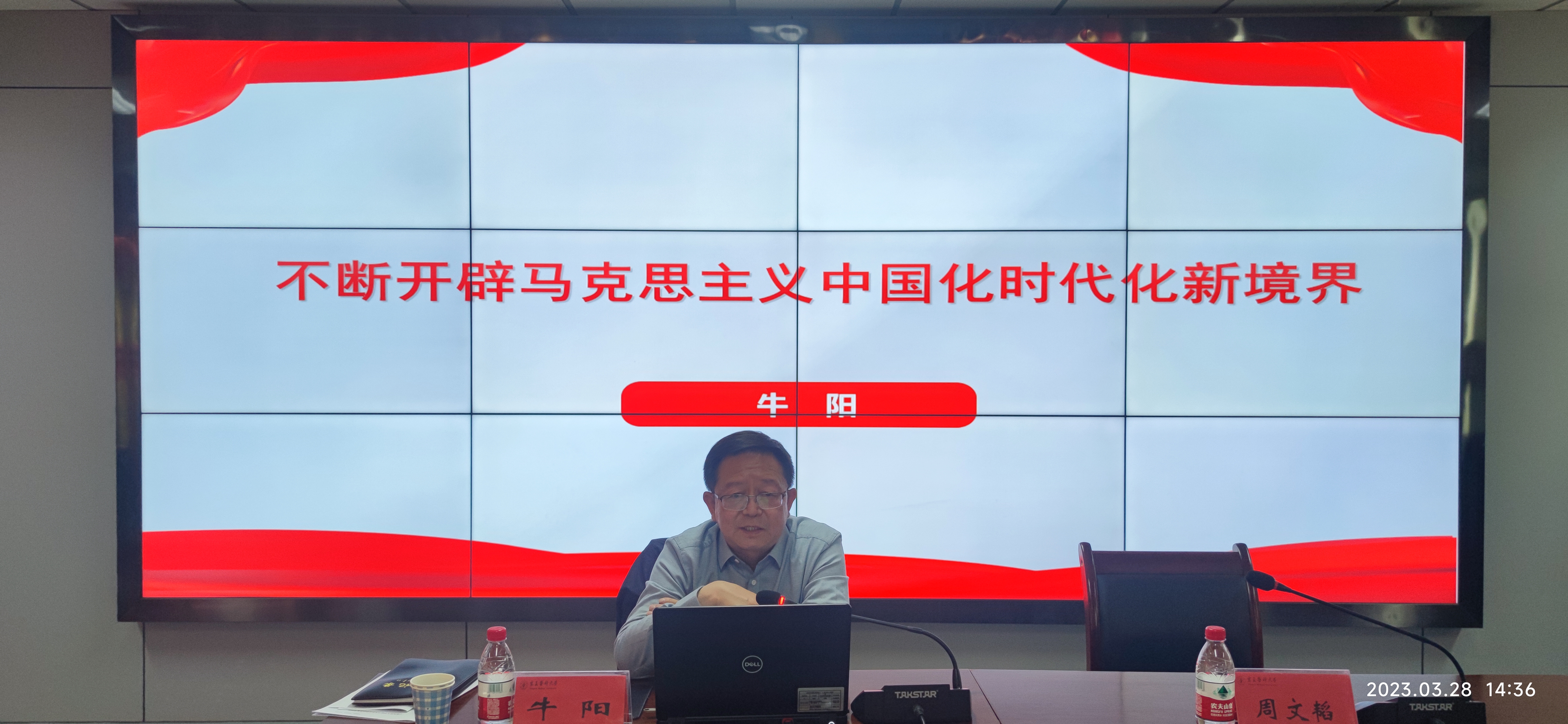 牛阳以“不断开辟马克思主义中国化时代化新境界”为题,紧紧围绕党的二十大报告主题和15个部分主要内容逻辑结构,重点阐释了开辟马克思主义中国化时代化新境界的丰富内涵、根本依据及实现路径,引导广大教师从党的百年发展历史、不断创新的理论视角和党的二十大确定的宏伟蓝图当中汲取智慧力量。他希望广大教师要认真学习贯彻党的二十大精神,深刻理解和把握习近平新时代中国特色社会主义思想的世界观和方法论,坚定对马克思主义的信仰,准确把握中国式现代化的中国特色和本质要求,把重大原则贯穿到教书育人的全过程各方面。始终坚守高校教师立德树人的职业风范,坚持不懈用习近平新时代中国特色社会主义思想凝心铸魂,不断增强为党育人、为国育才的使命担当。