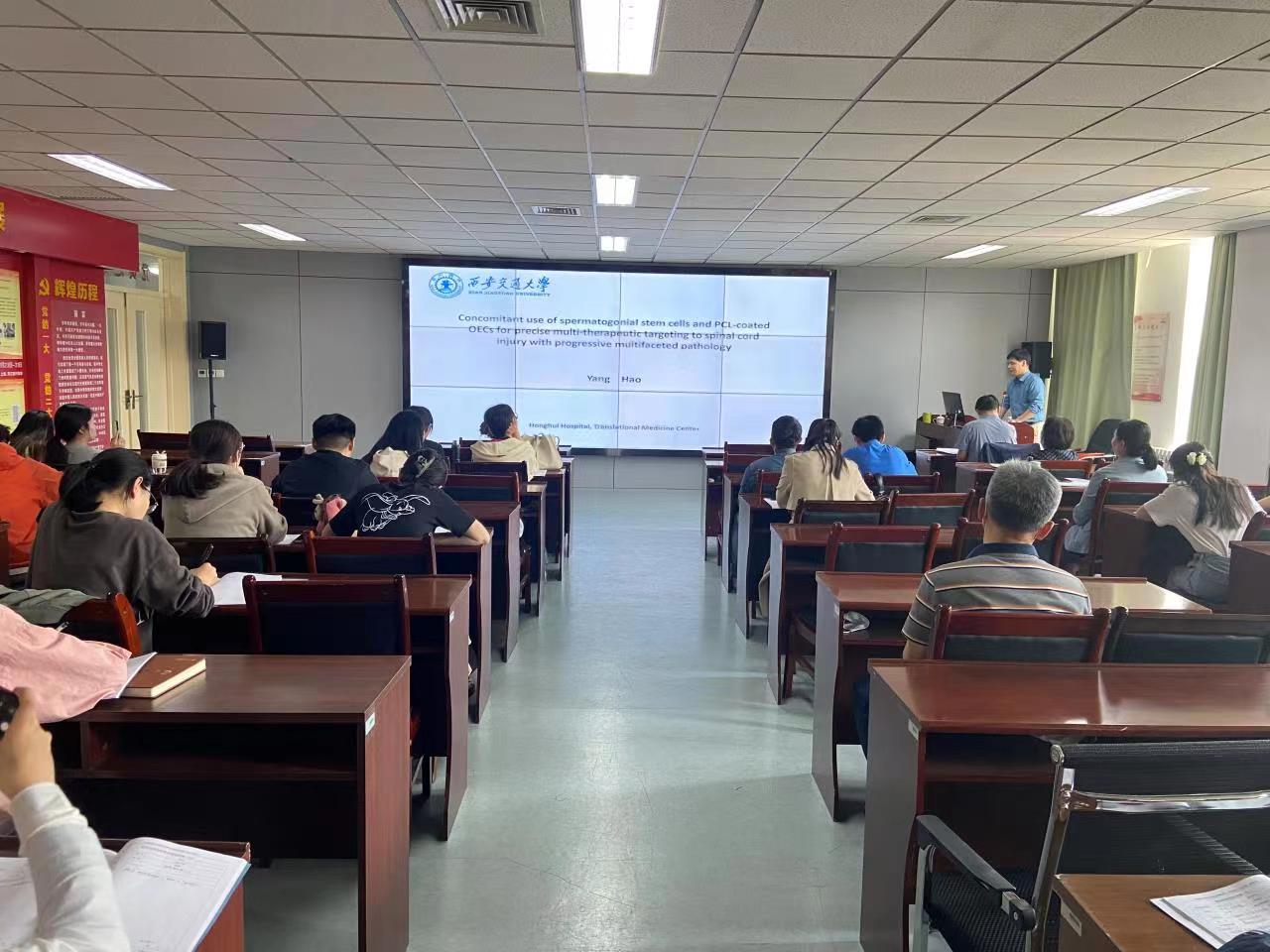 为加快一流学科建设步伐,提高人才培养的质量,5月23日下午,基础医学院2023年第三期学科建设论坛在厚生楼党员之家举行。西安交通大学杨浩博士作了《Concomitant use of spermatogonial stem cells and PCL-coated OECs for precise multi-therapeutic targeting to spinal cord injury with progressive multifaceted pathology》的专题讲座,相关领域师生积极参加讲座。
