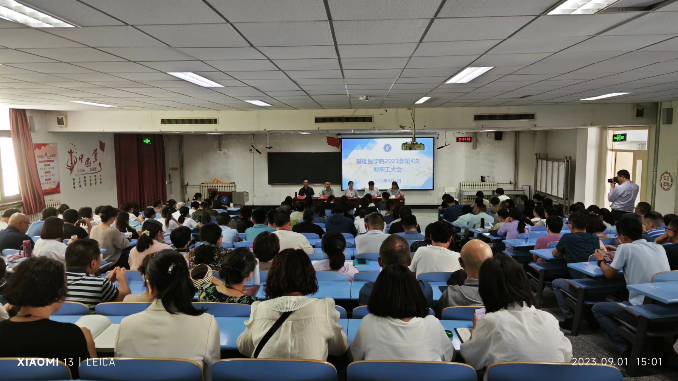 9月1日下午,基础医学院在厚生楼101教室召开全体教职工大会,会议由学院党委书记丁玲主持,学院副书记、院长牛建国出席会议,学院领导班子成员及全体教职工参加了会议。