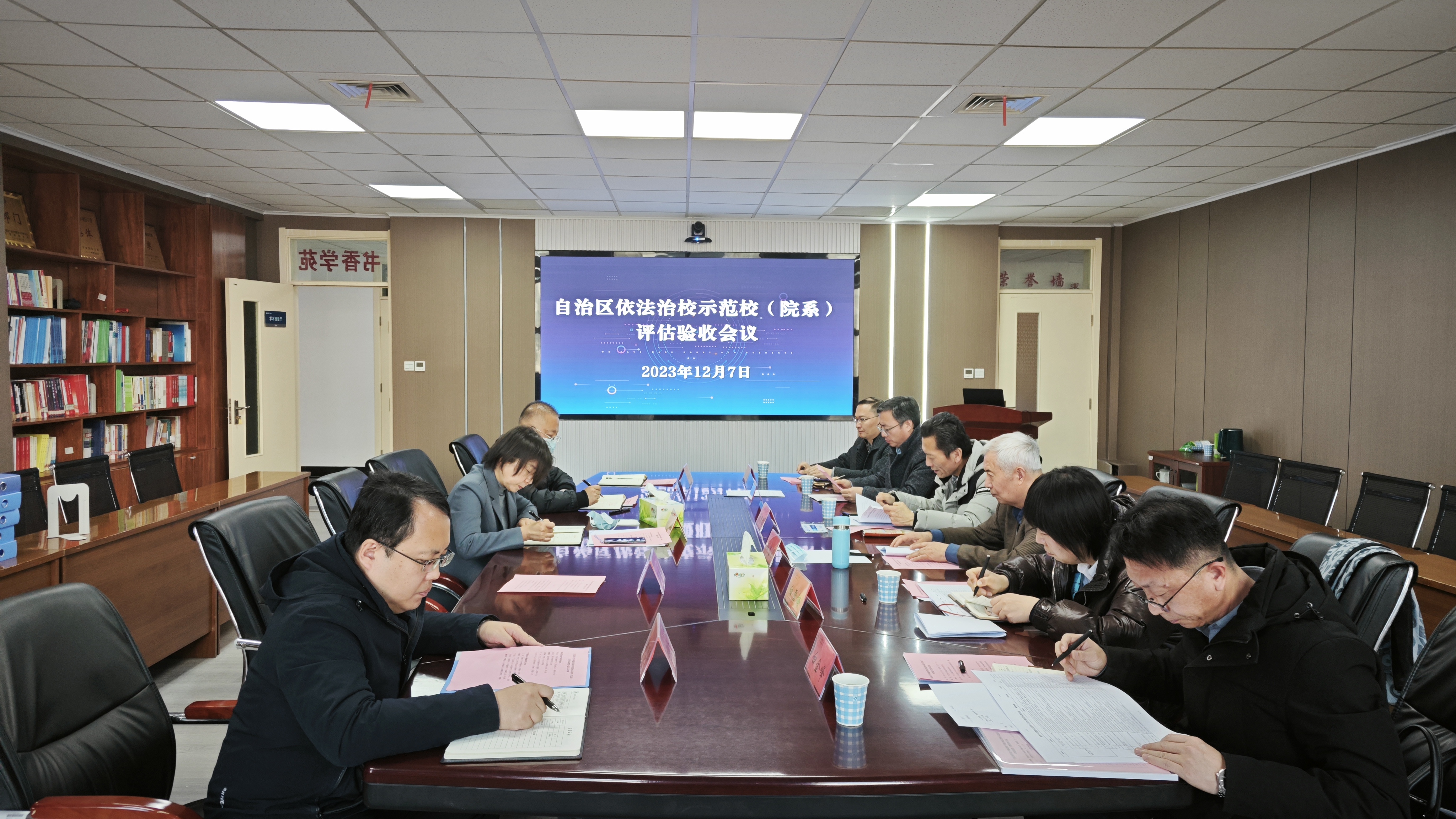 12月7日,自治区教育厅政策法规处孙金忠调研员带领专家组来校评估验收基础医学院依法治校示范校(院系)建设工作,评估验收专家组和学院班子成员参加了评估验收会议,丁玲主持验收会议。
