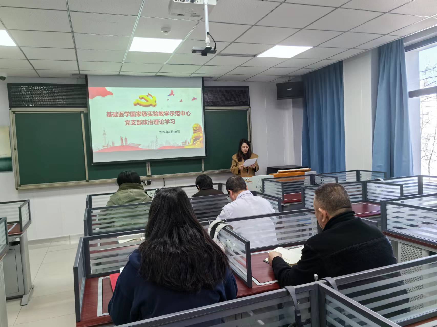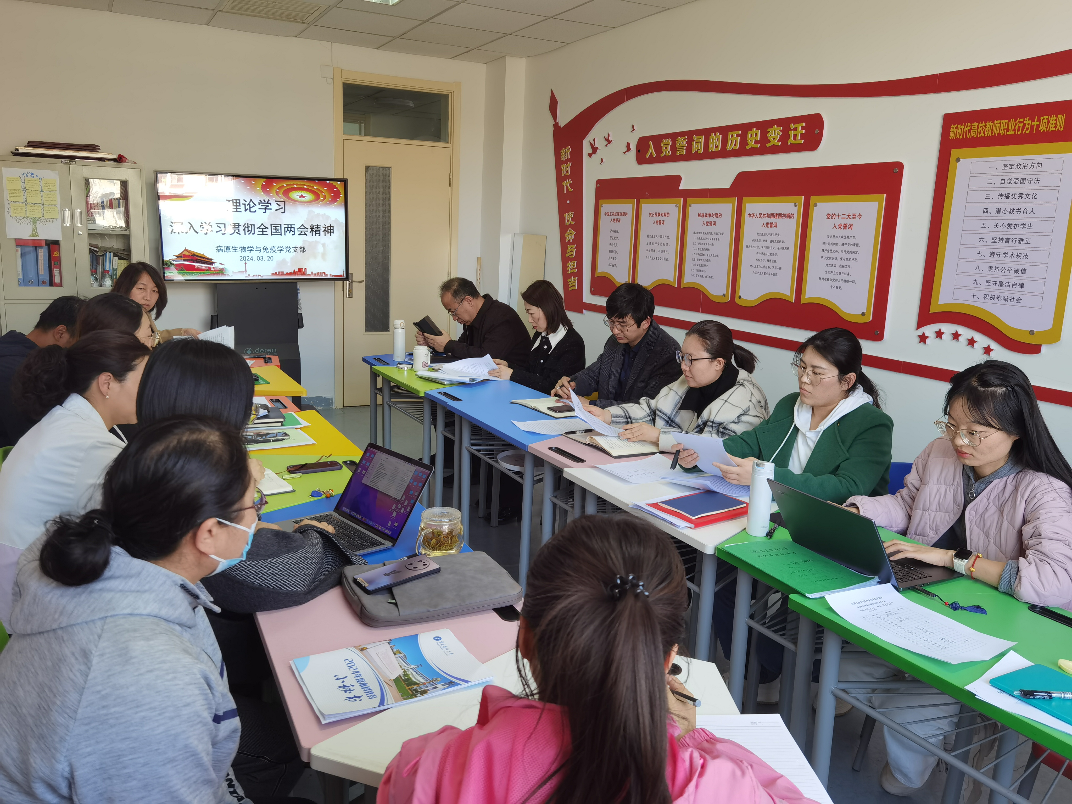 近日来,基础医学院党委各支部、学系、实验室、班级纷纷开展支部大会、主题党日、讲党课等活动,传达学习习近平总书记重要讲话和全国两会精神,先后集中学习了《习近平总书记在全国两会上的重要讲话》《政府工作报告》等重要文件,观看了《春之声——习近平总书记出席2024年全国两会纪实》《习近平在参加江苏代表团审议时强调 因地制宜发展新质生产力》,让广大师生进一步锚定目标、持续发力,为推进学院高质量完成2024年重点工作任务贡献智慧和力量。