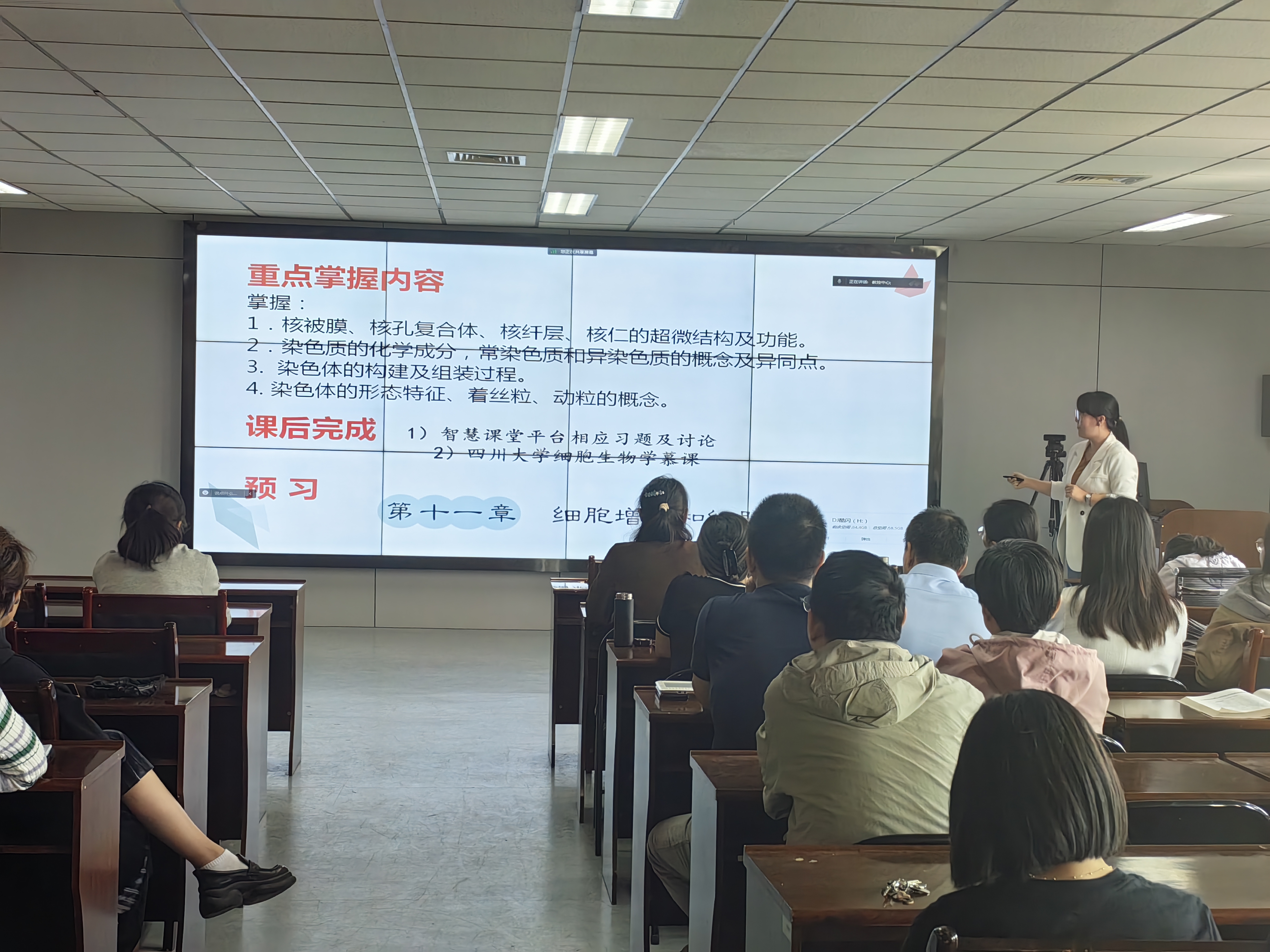 4月25日,基础医学院在党员之家开展青年教师试讲暨集体备课活动,此次活动采取线上线下同步进行,党洁教授全程主持,李子华、左娣副教授试讲。