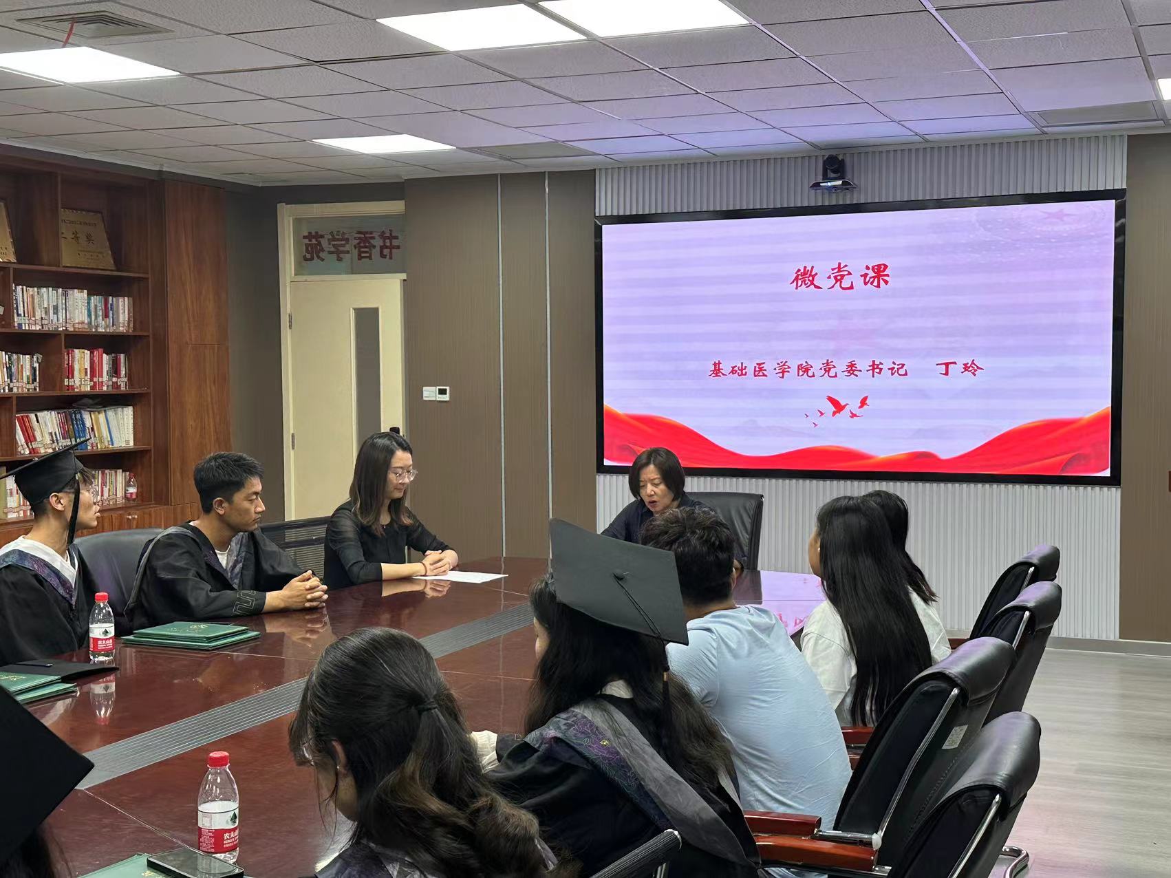 为进一步加强毕业生党员离校教育,6月24日下午,基础医学院党委组织2024届本硕博毕业生党员在厚生楼书香学苑开展了“别离•青春再出发”毕业主题党日活动。学院党委书记丁玲、副书记卢晓华、党支部书记代表李菲一同参加。